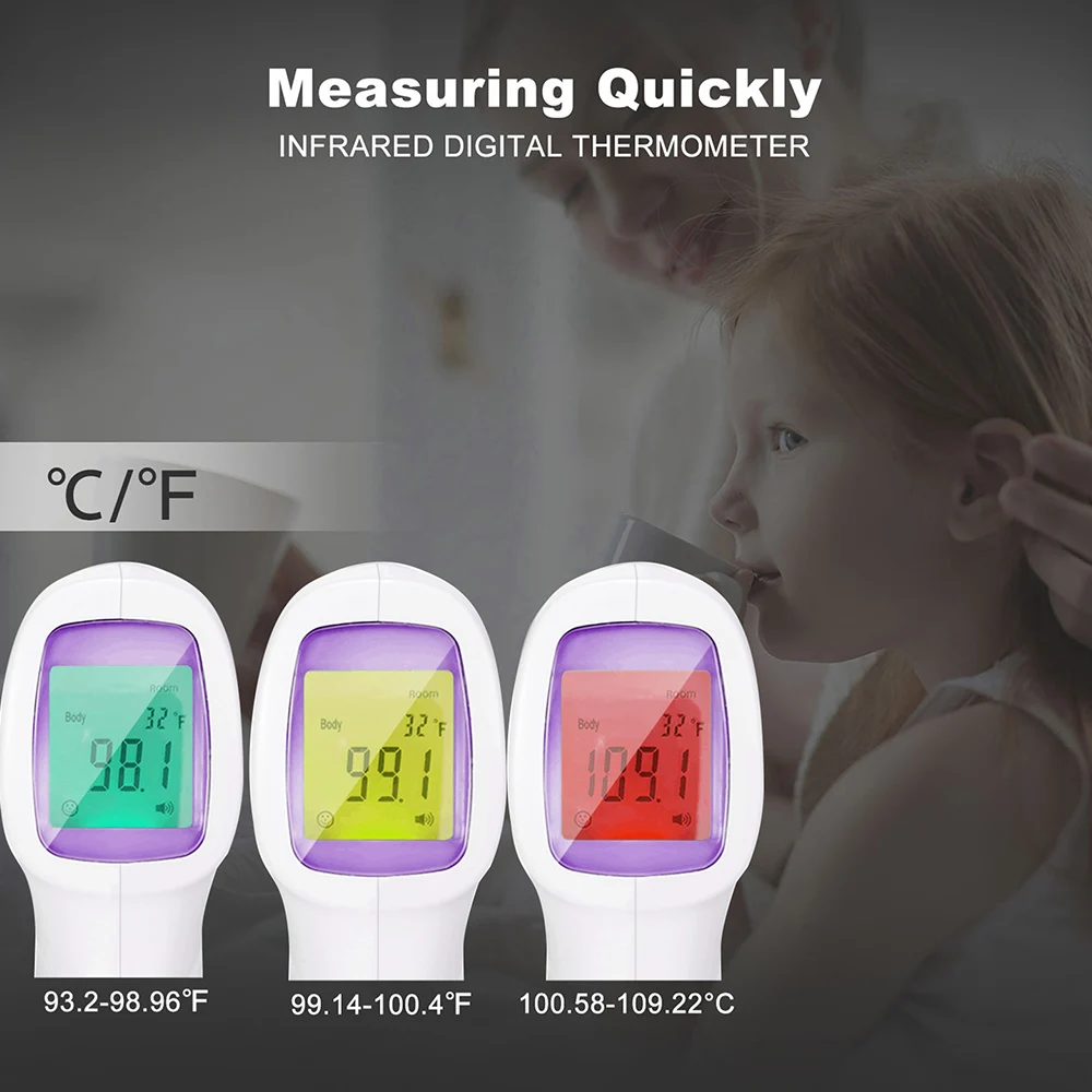 Благодаря передовой инфракрасной технологии этот портативный инфракрасный термометр может обеспечить быстрое и точное измерение температуры без контакта в течение одной секунды, эффективно защищая вас от перекрестной инфекции, вызванной традиционным измерением температуры тела. Хороший продукт, который вы не пропустите!Особенности:[Бесконтактное измерение] используется для измерения температуры лба или уха на расстоянии 1-5 см без прямого контакта с кожей человека, предотвращая перекрестную инфекцию и делая измерение более безопасным.[Несколько режимов] Измерение температуры лба и температуры уха и температуры объекта.[Высокая точность и 1s Быстрое измерение] усовершенствованный инфракрасная система обнаружения и высокоточными датчиками обеспечивают высокую точность (± 0,2 ℃) и мгновенный результат (≤ 1s).[Переключение устройства] свободный обмен температурных единиц (℃ / ℉). В режиме выключения удерживайте клавишу памяти около 6 секунд, пока не отобразится ℃/℉. После автоматического отключения, перезагрузите счетчик и установка будет успешной.[Температурная сигнализация] температура сигнализации может быть установлена свободно, легко работать.[Хранение данных] хранение 7 групп данных измерений для анализа и справки.[ЖК-дисплей Экран] ясный 3 цифр ЖК-дисплей дисплей Экран с подсветкой, легко читать результатов измерений даже в соответствии с тусклой среде.[Автоматическое выключение] Автоматическое выключение питания, если нет работы в течение 8 секунд, эффективное энергосбережение.[Прочного Питание] питание от батарей 2 * AAA 1,5 V батарея (не входит в комплект поставки), низкая потребеление энергии в течение примерно 20000 раз, что измерения были сделаны вручную.Упаковочный лист:1 * термометр1 * Руководство пользователя (на английском языке)