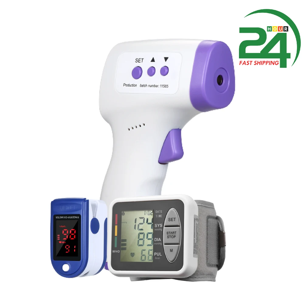 Тонометр на запястье, прибор для измерения артериального давления, Сфигмоманометр + цифровой термометр + пульсоксиметр, оксиметр для измерения кислорода в крови, Пальчиковый оксиметр