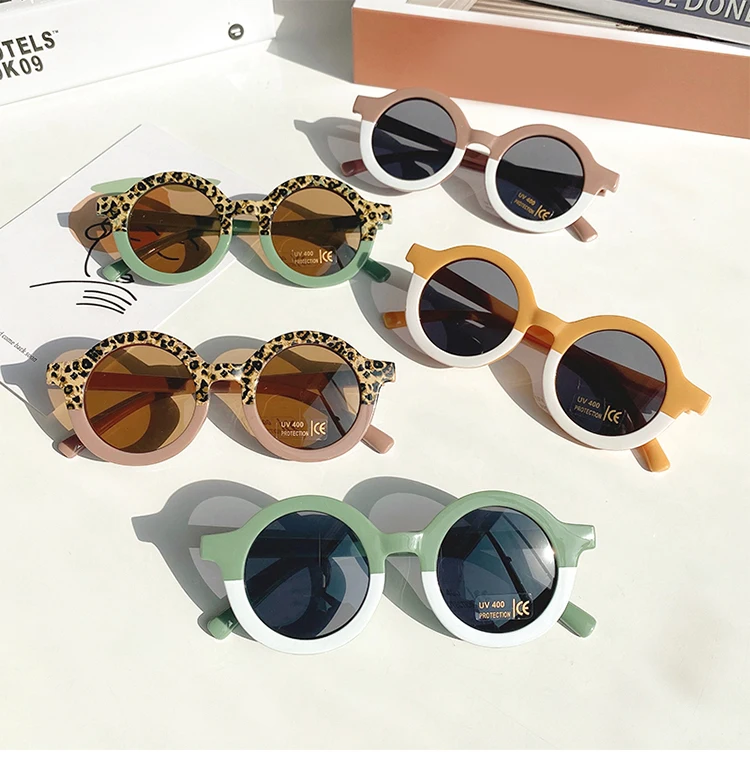 Модные детские солнечные очки мальчикам и девочкам, 2021 новые круглые солнцезащитные очки для детей в винтажном стиле; С леопардовым принтом; Цветные пляжные очки Оттенки culos От 1 до 5 лет