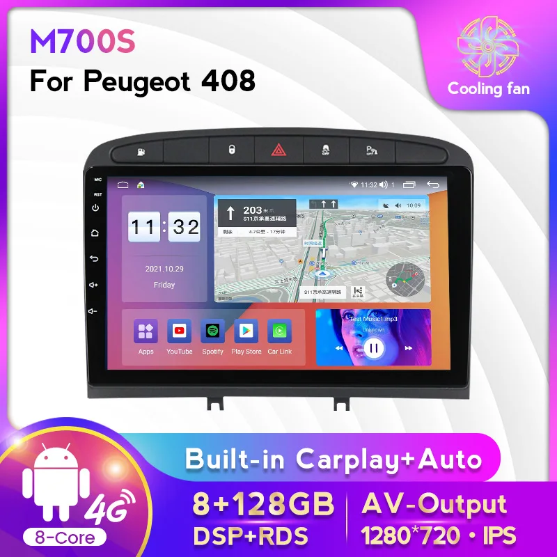 Автомагнитола 2DIN на Android 11, 8 + 128 ГГц, мультимедийный плеер для Peugeot 308, 308S, 408, 2012-2020, GPS-навигация, 4G, LTE, Wi-Fi, Carplay + AUTO BT