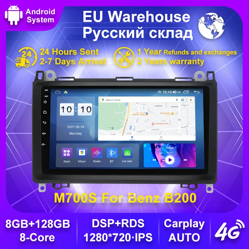 Автомобильный радиоприемник IPS Android11 8 + 128G, стереоприемник для Mercedes Benz B200 Sprinter W906 W639 AB Class W169 W245 Viano Vito