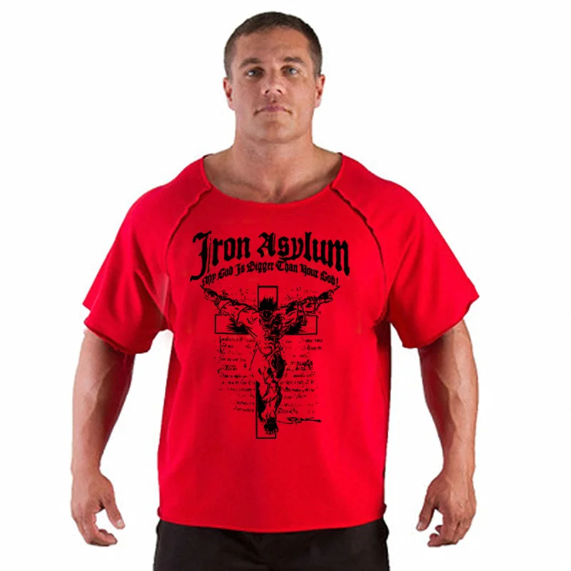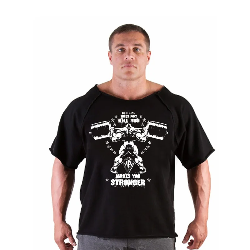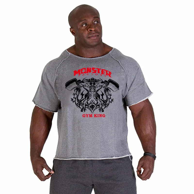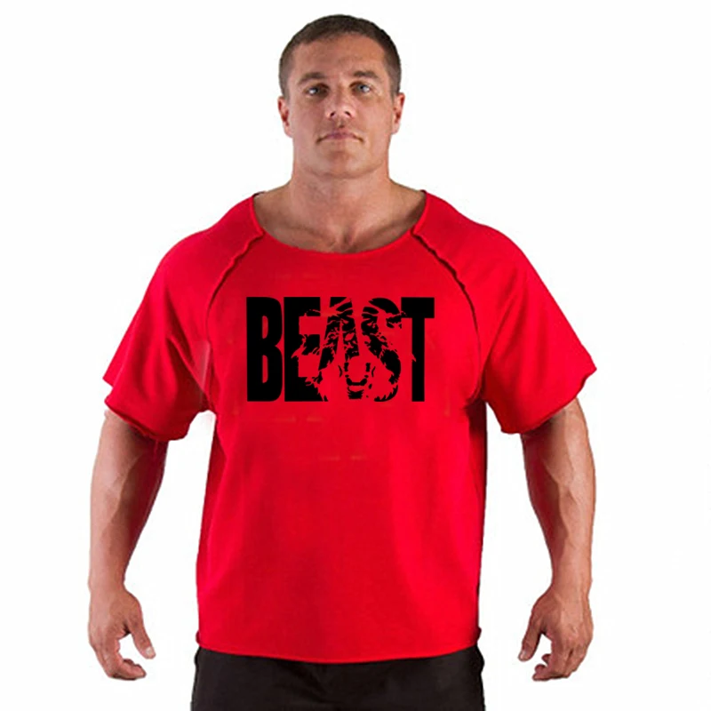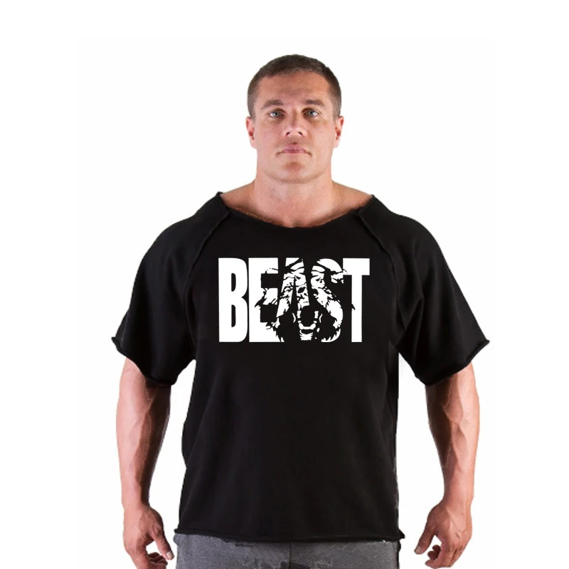 Футболка мужская Спортивная с принтом Gymking BEAST, хлопковая Свободная рубашка с рукавом до локтя для мускулов и бодибилдинга, для спортзала и фитнеса