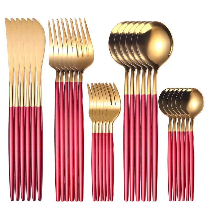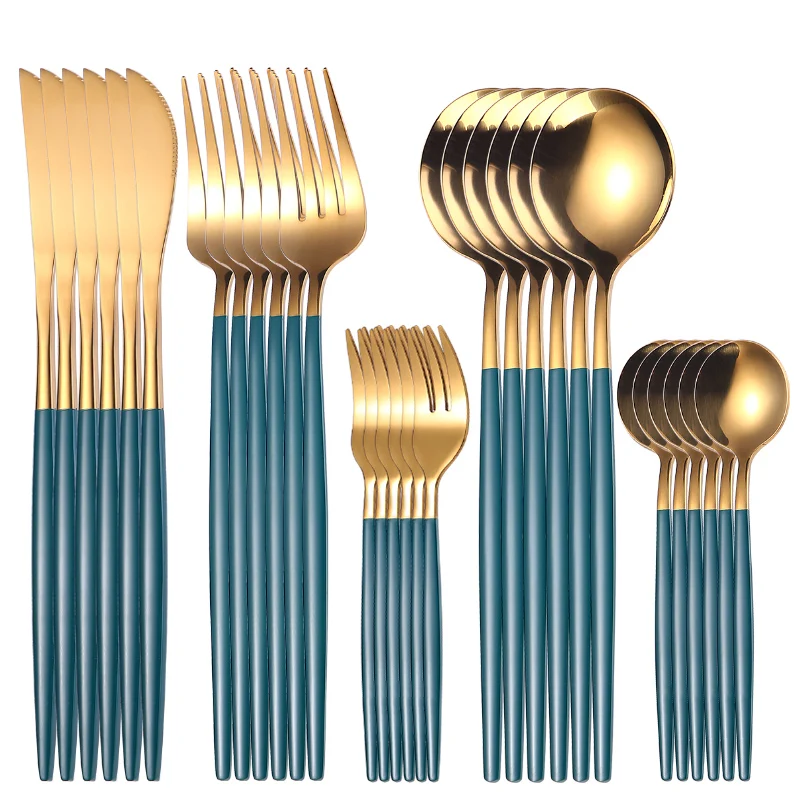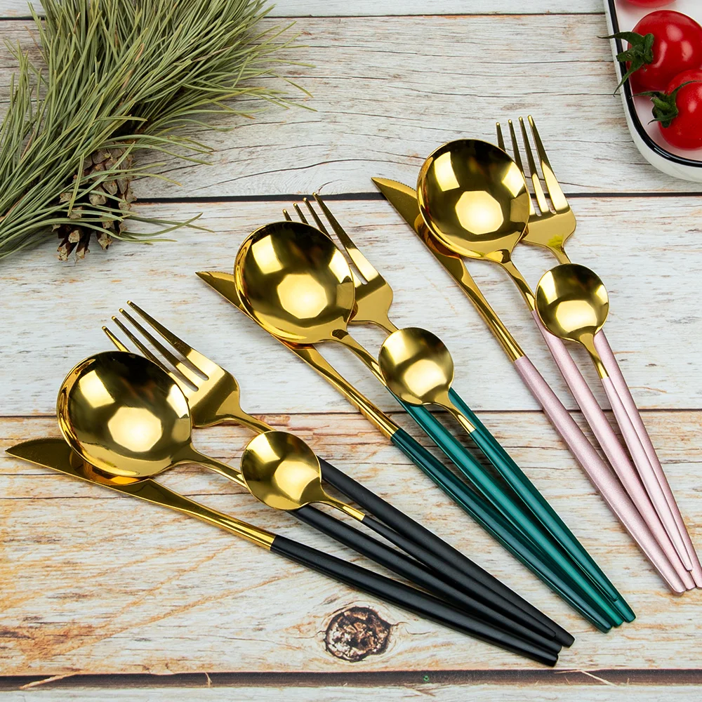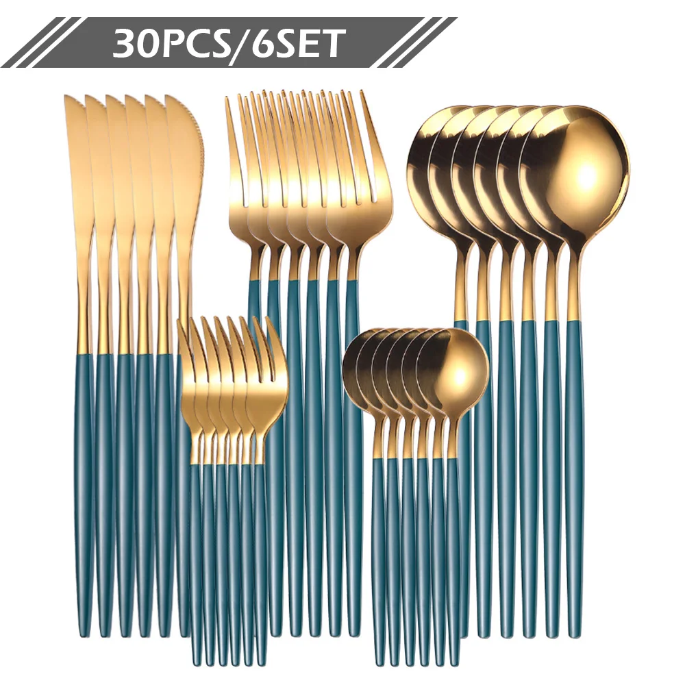 Набор столовых приборов из нержавеющей стали, 30 шт.6 наборов, Портативные Ножи золотого цвета столовые приборы, ложка, вилка, набор столовых приборов для кухни