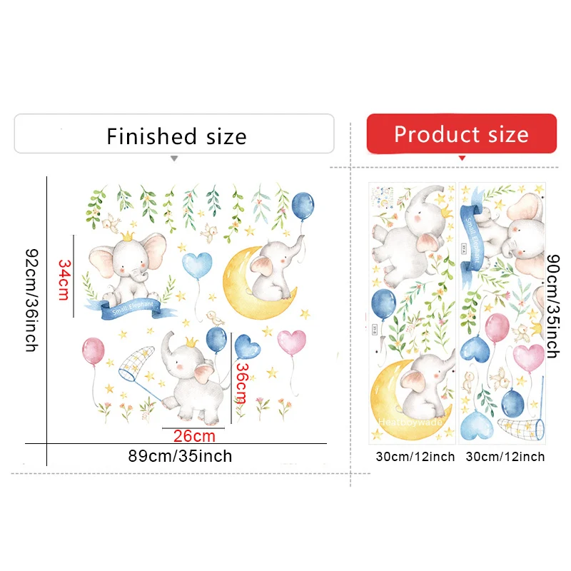 Мультфильм маленькие слоны воздушный шар Луна наклейки на стену сти...