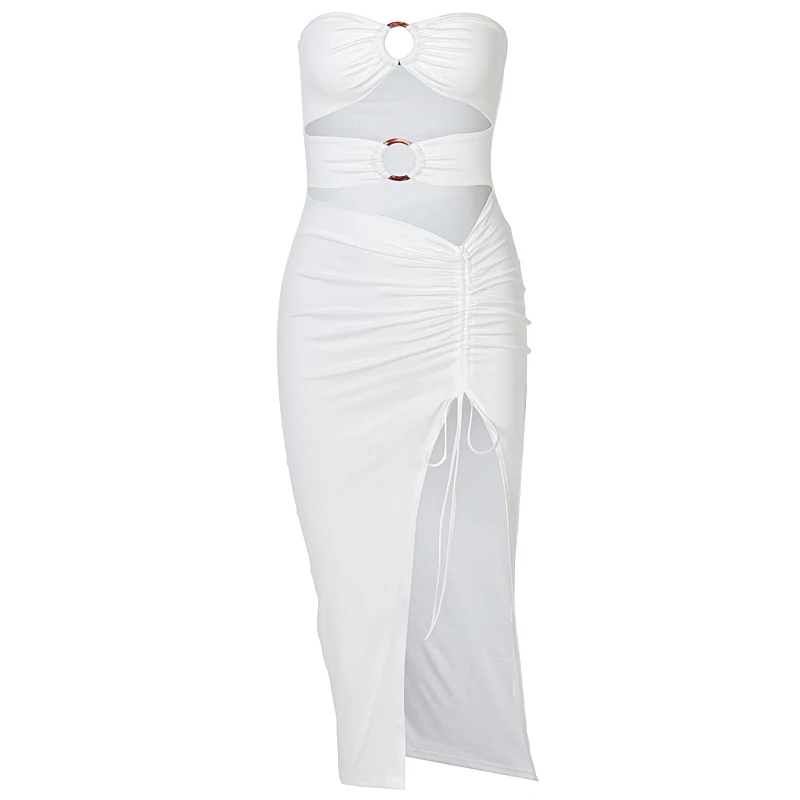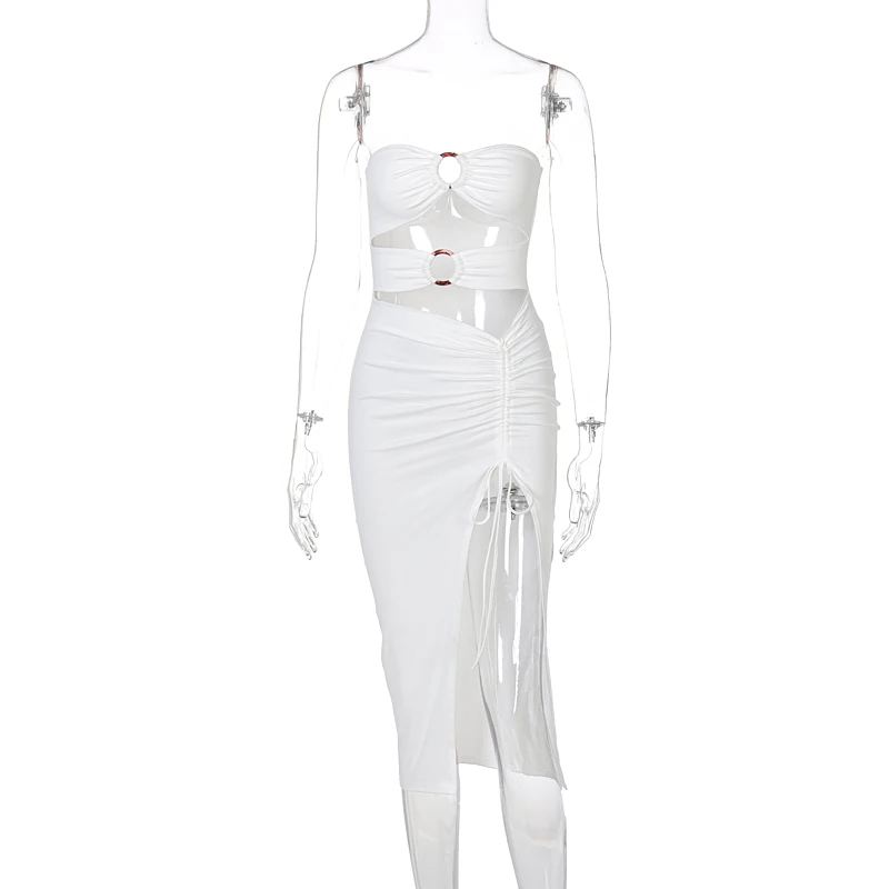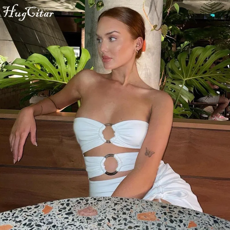 Hugcitar 2021, без рукавов, однотонное, с вырезами, Бандажное, с рюшами, с разрезом, сексуальное платье, летняя женская мода, уличная одежда для клуба