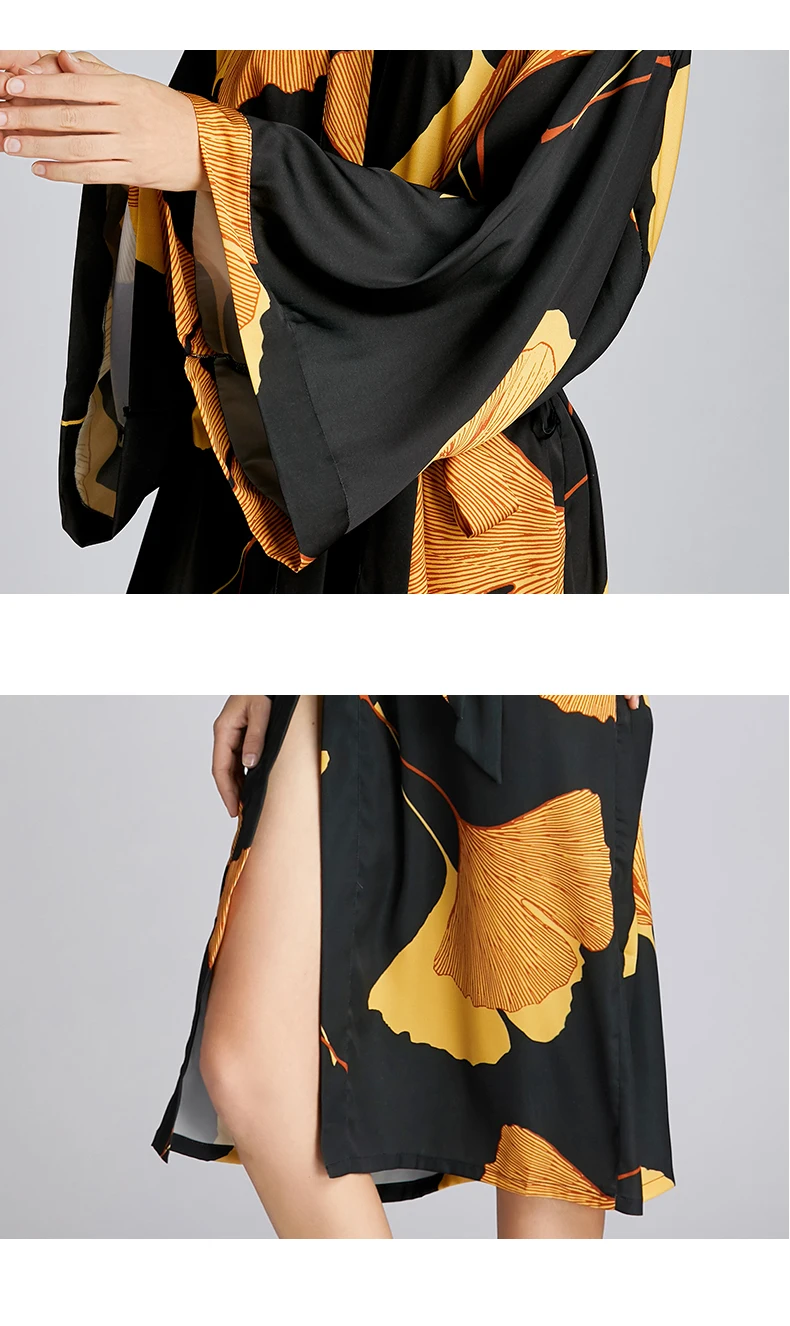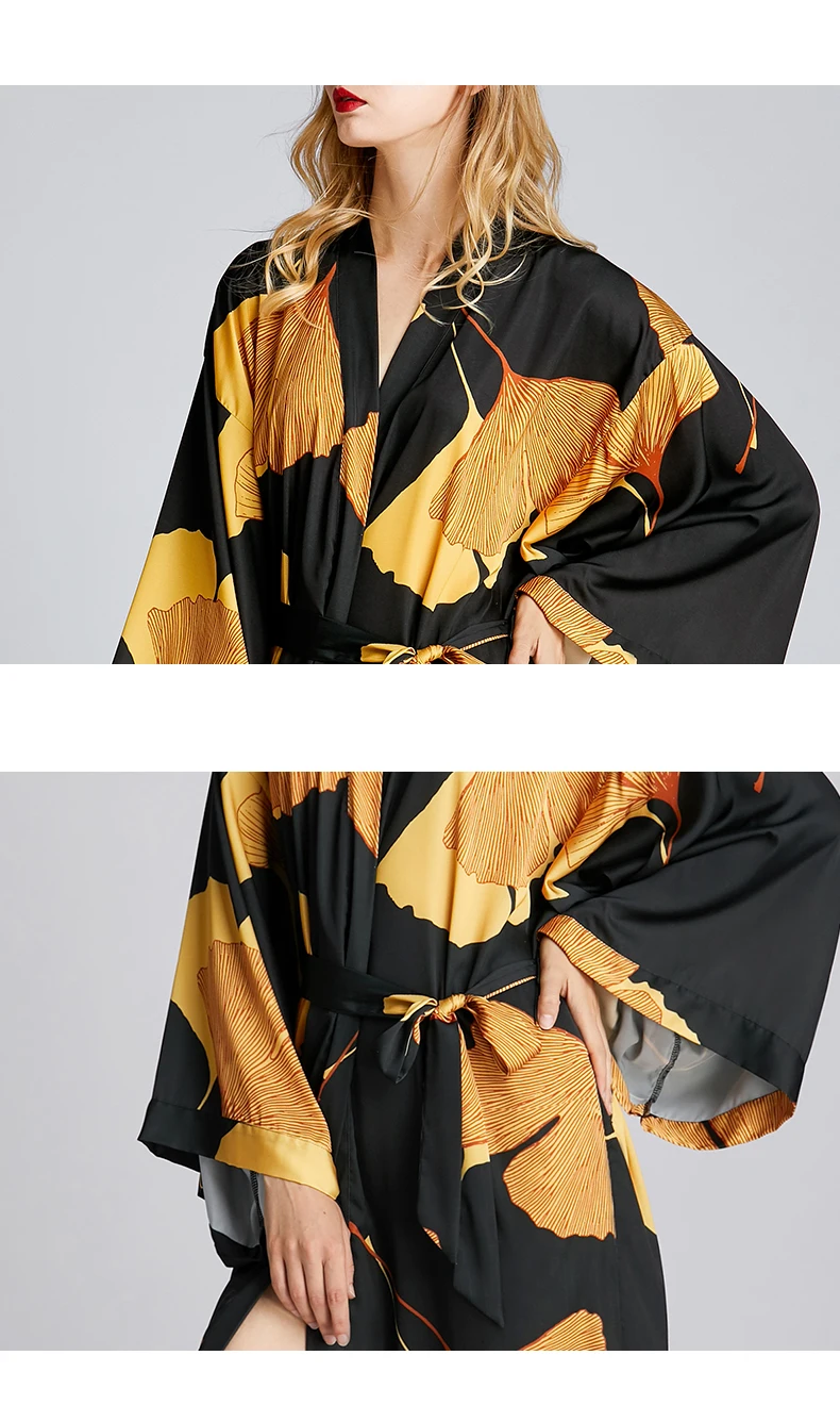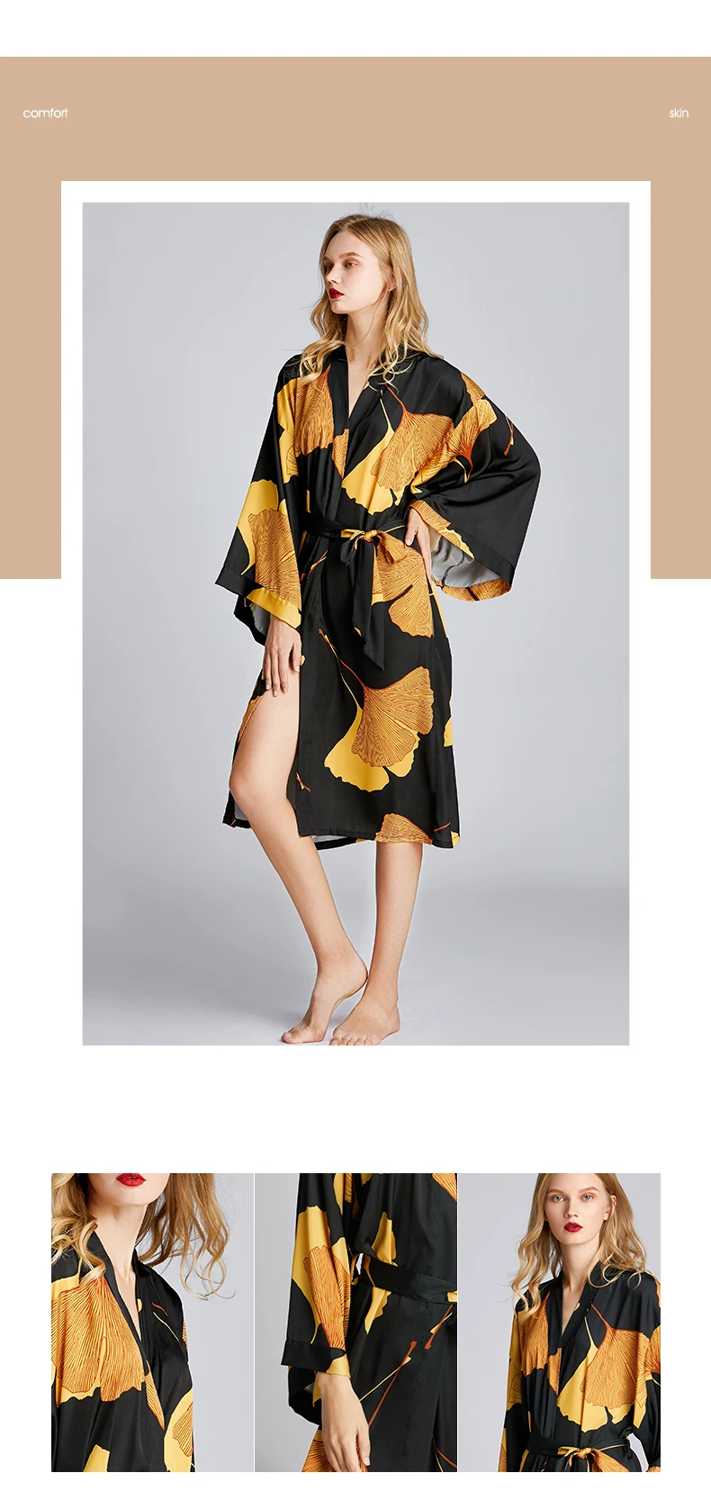 Пижама женская с принтом кленовых листьев, пикантный халат свободного покроя, домашний утренний халат, ночная рубашка, большие размеры, весна-лето 2021