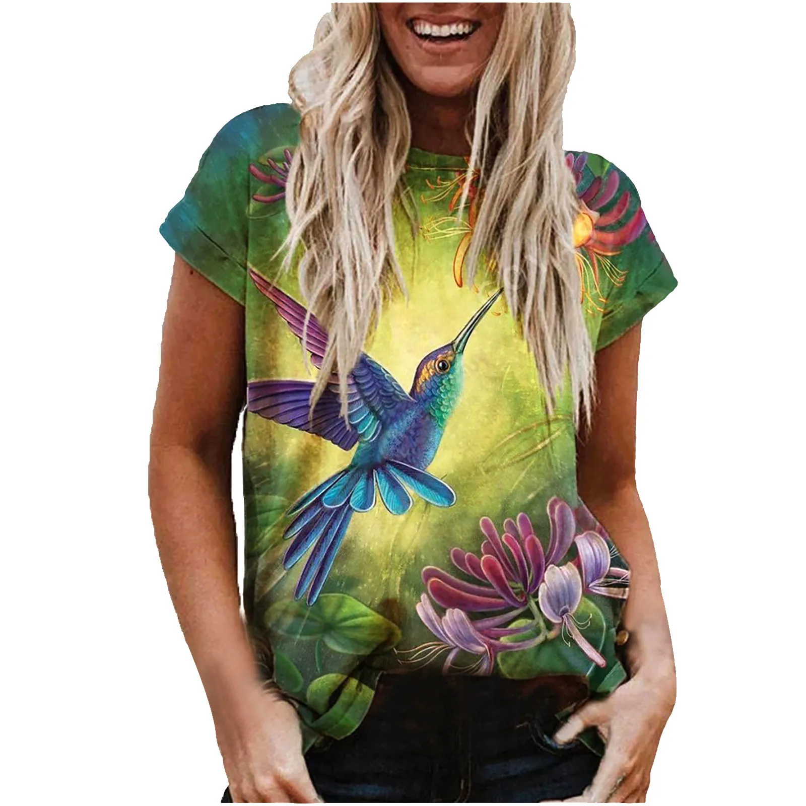 Сезон: весна, лето, осеньПол: женщин, девочекПовод: повседневный, DaliyМатериал: полиэстерТип узора: принтВоротник: круглый вырезСтиль: Повседневный, модныйДлина: обычнаяДлина рукава: короткий рукавКак стирать: Ручная стирка в холодной воде, подвешивание или сушкаЧто вы получаете: 1 Женская футболка