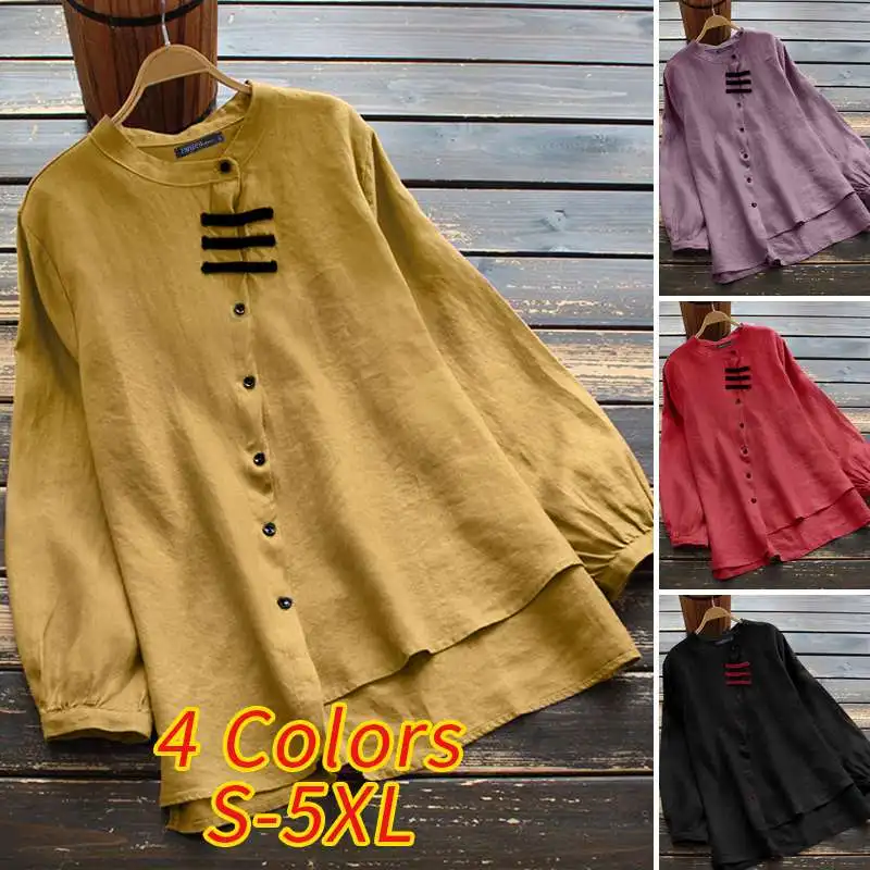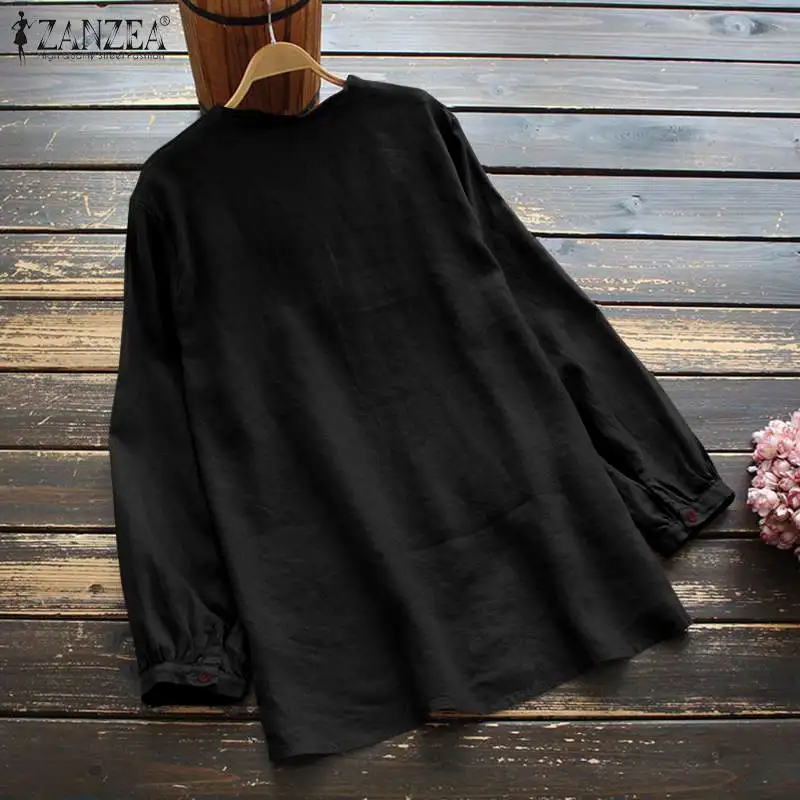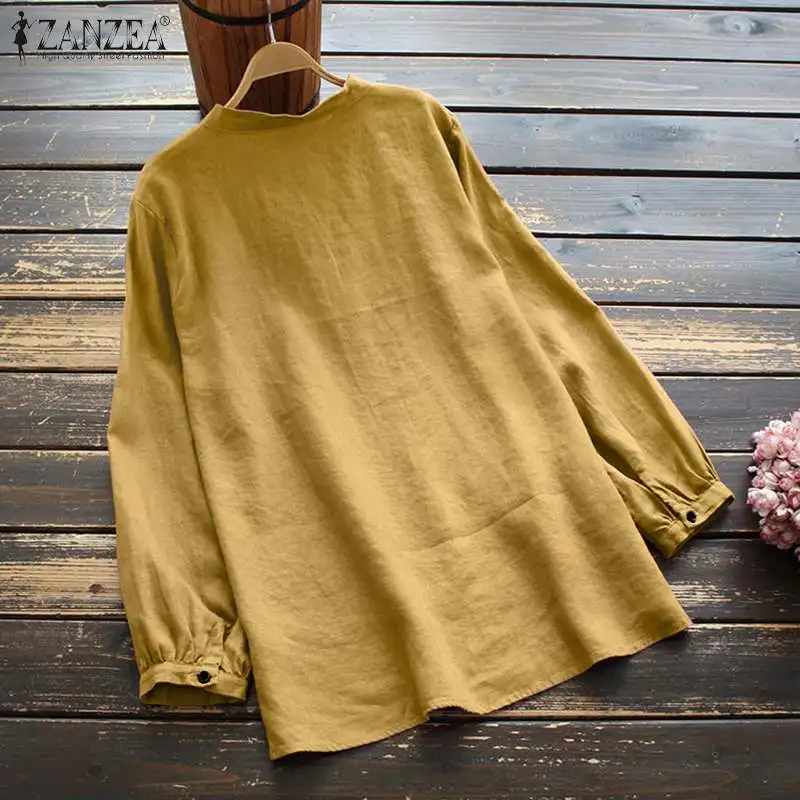 ZANZEA, винтажная рубашка на пуговицах, туника оверсайз, топы для ж...