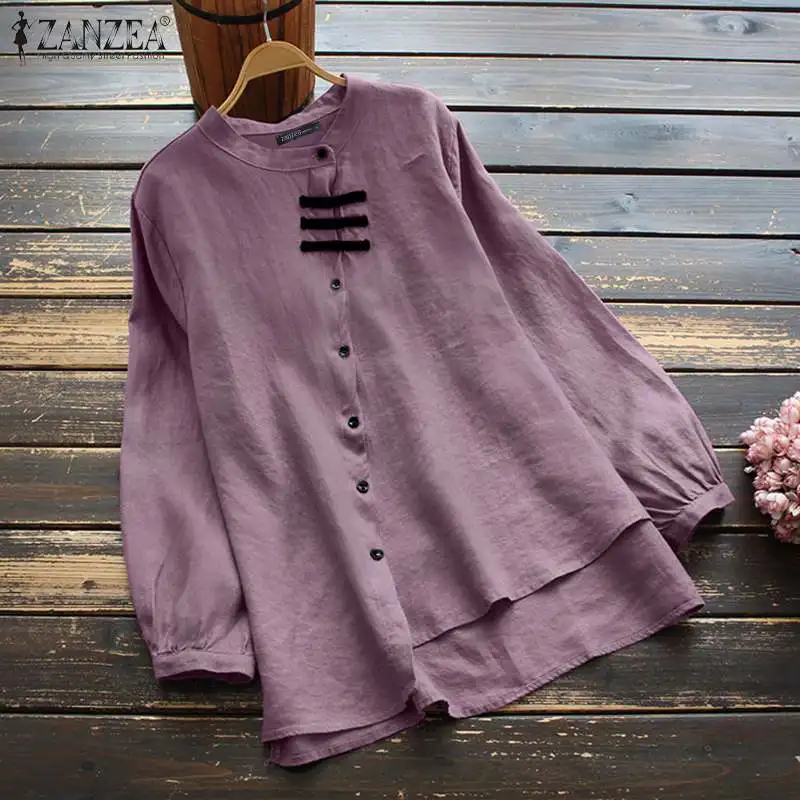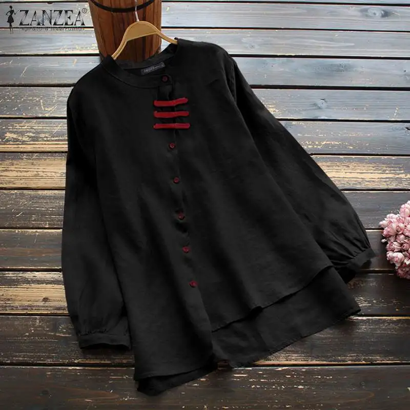 ZANZEA, винтажная рубашка на пуговицах, туника оверсайз, топы для женщин, Повседневная Блузка с длинным рукавом, свободные хлопковые блузы, Femininas Chemise 2021