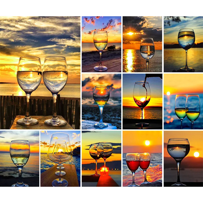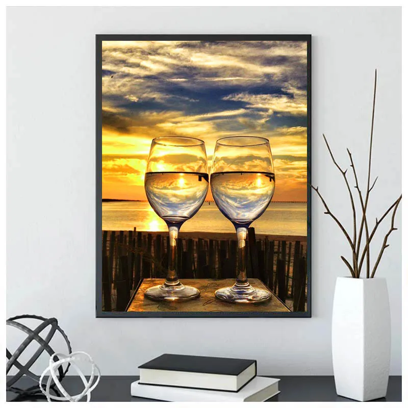 Алмазная 5D картина сделай сам, винный бокал, Набор для вышивки квадратнымикруглыми стразами, картины для вышивки крестиком на закате, подарки для домашнего декора
