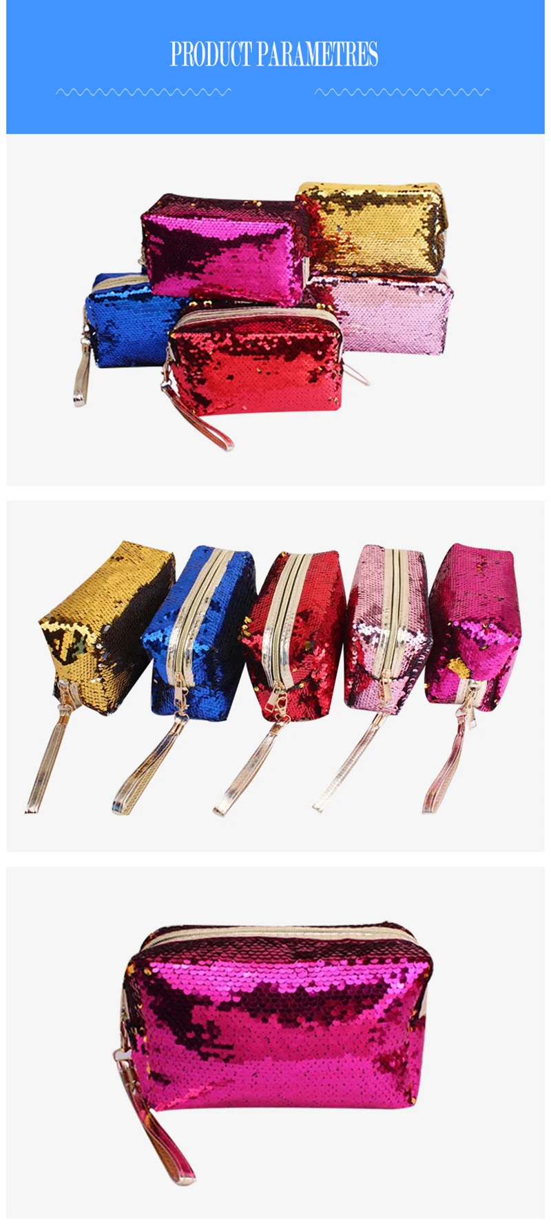 Модная блестящая портативная косметичка с блестками, органайзер, держатель на молнии, чехол для макияжа, дорожная сумка для хранения, женская косметичка для девочек