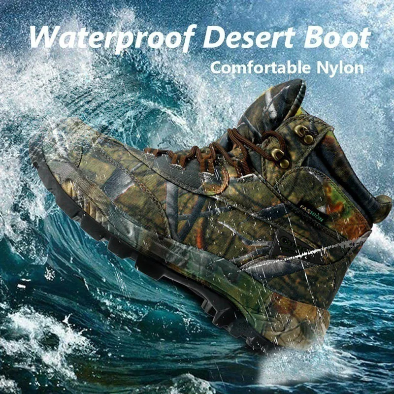 Пеший Туризм Сапоги Для мужчин с камуфляжным принтом; В стиле милитари; Обувь с высоким берцем водонепроницаемые охотничьи сапоги Нескользящая амортизирующая альпинизм