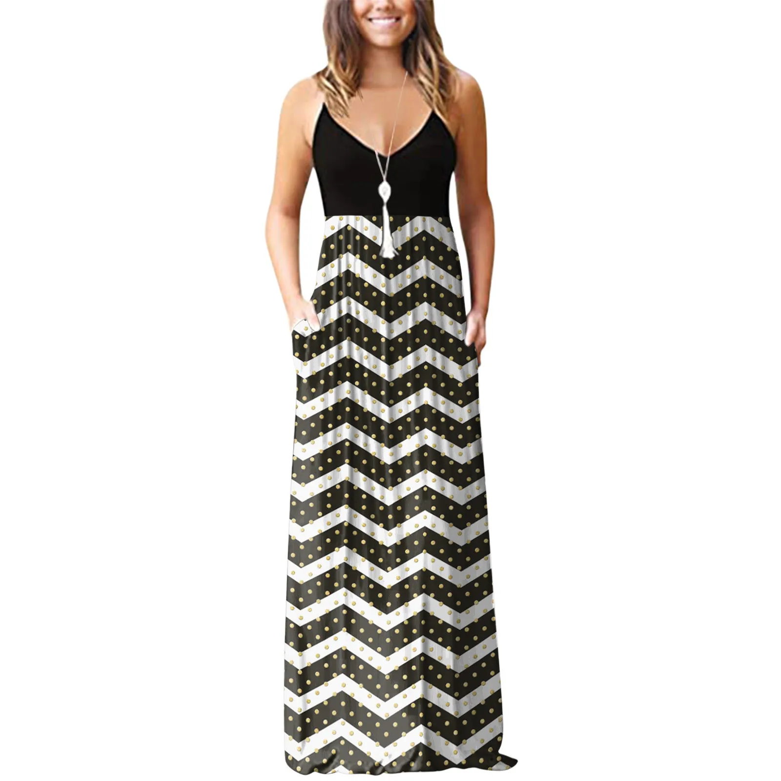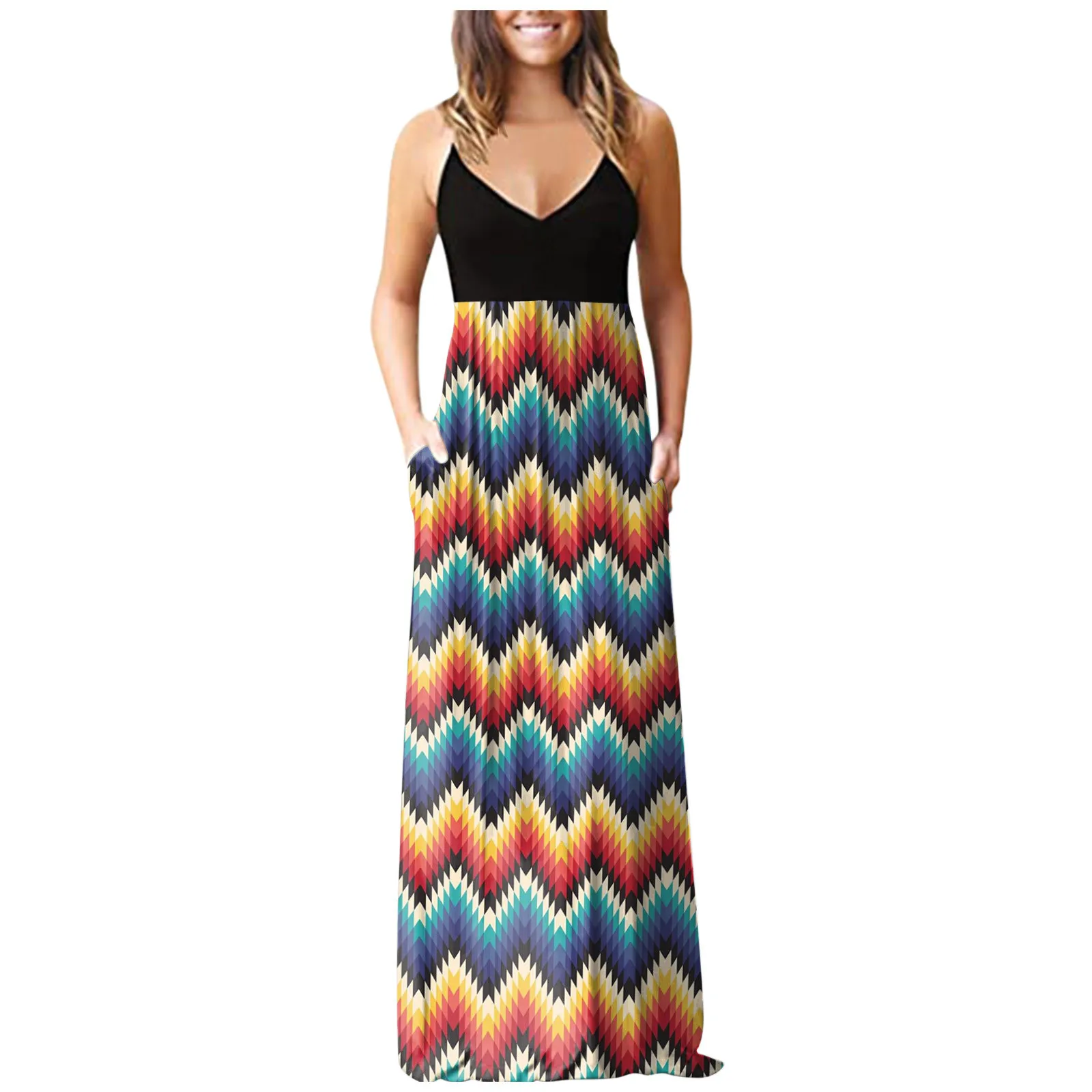 Платье Макси женское, без рукавов, с цветочным принтом, Пляжное, длинное, свободное, с V-образным вырезом, с карманами, # Y10