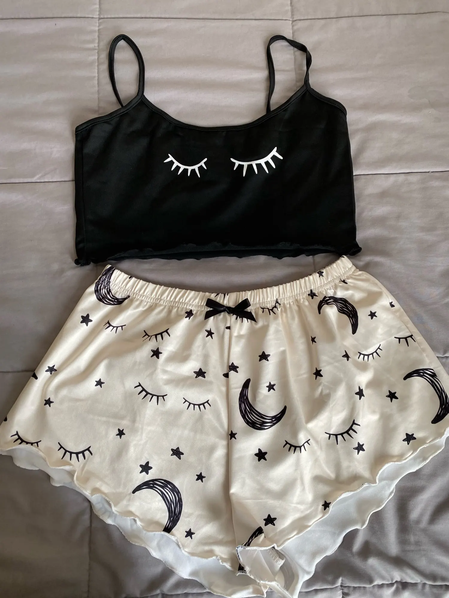 Летний пижамный комплект, милая печать печенья для женщин, шорты с ...