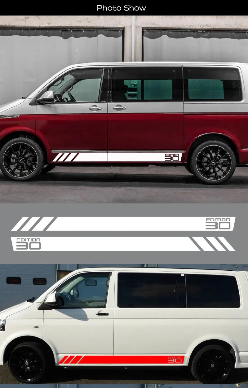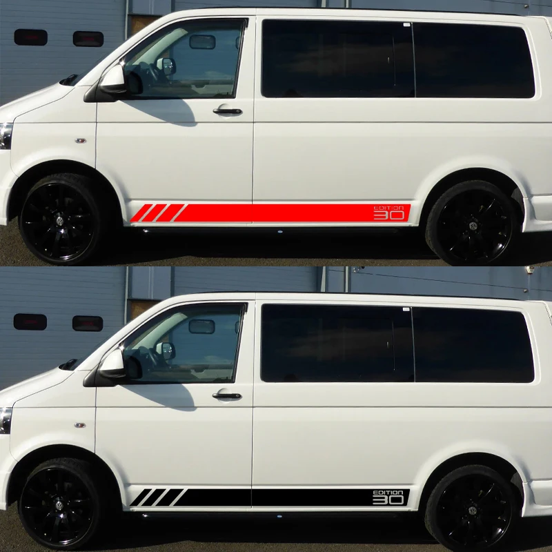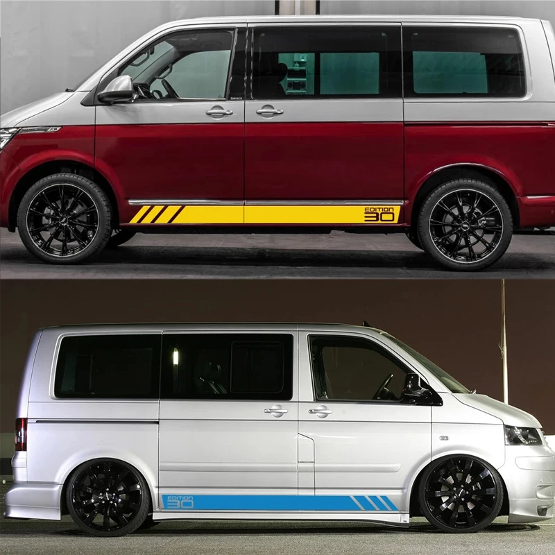 Комплект из 2 предметов, в Калифорнии T6 30 Издание автомобильный боковой двери юбка в полоску Стикеры для Volkswagen VW Multivan транспортер T4 T5 T6 аксессуары