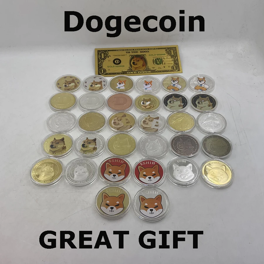 32 вида красивых монет WOW, золотой или серебряный шиб, Шиба-Ба-луна, догкоин с 1 золотой банкнотой догкоин для коллекции подарка