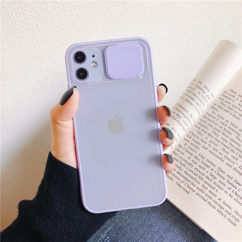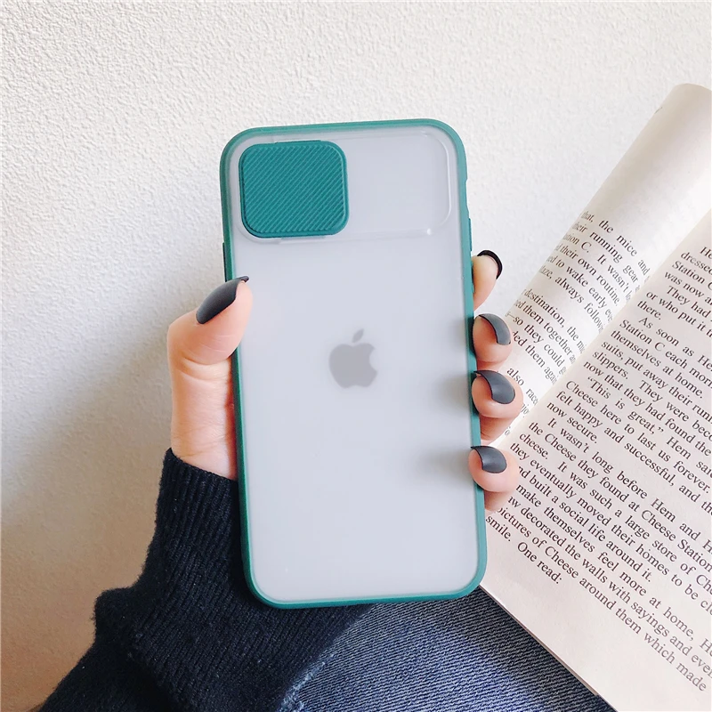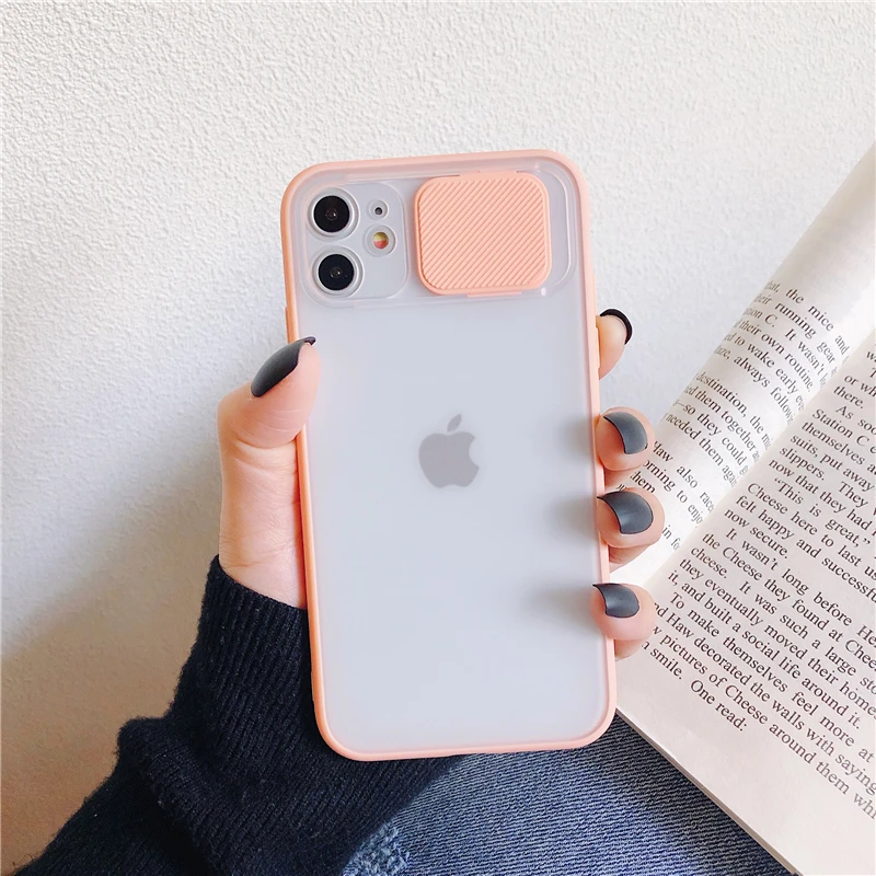 Чехол с защитой камеры для iPhone 12 mini, 11/12 Pro Max, XS Max, XR, X, SE, 8/7 Plus Пять цветовСлайд-камера защита объектива Матовый Бампер прозрачныйЧехлы для задней панели из ТПУ + ПК