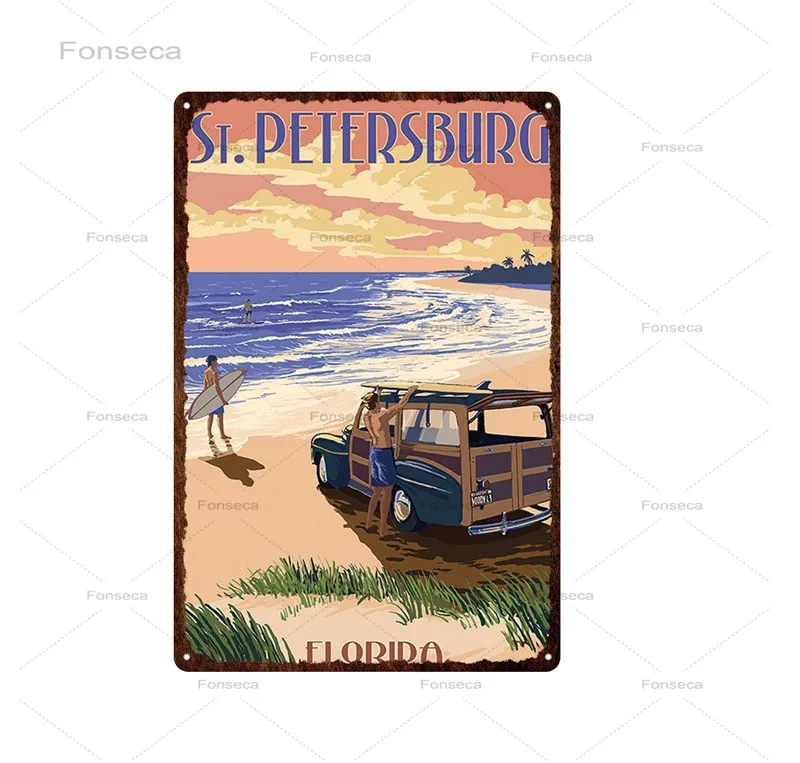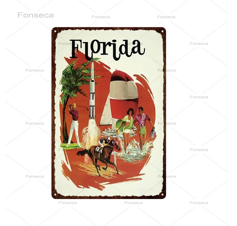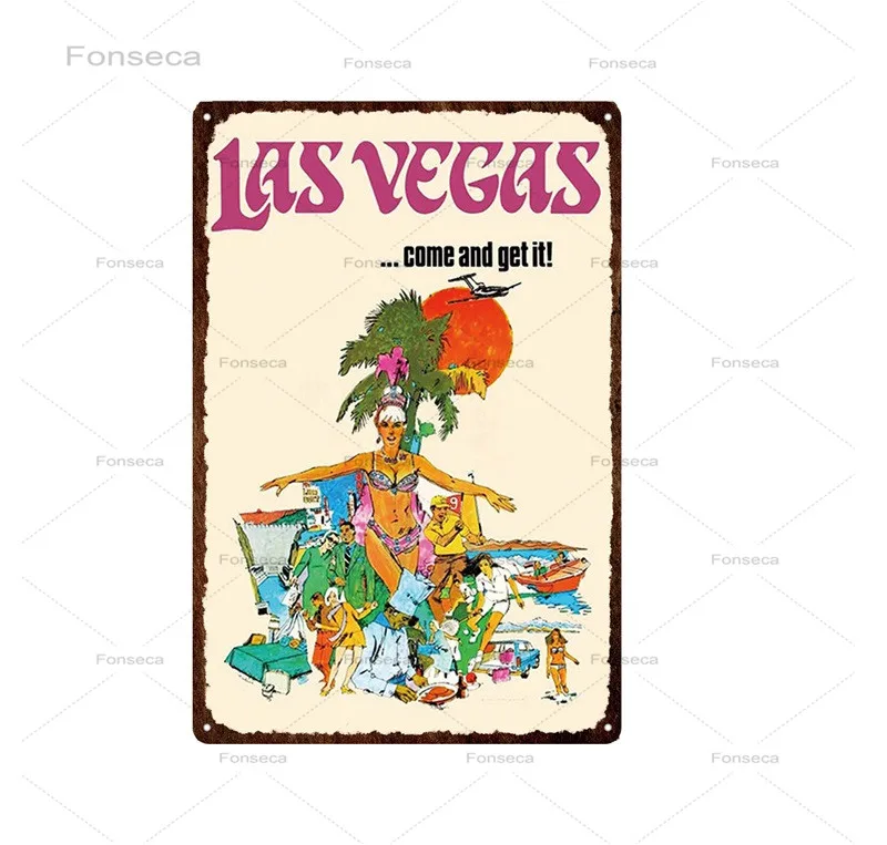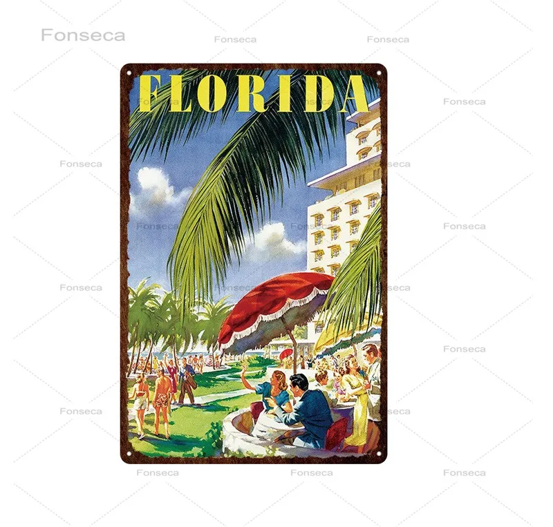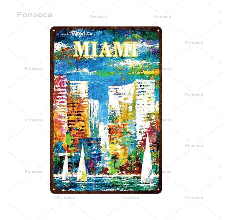 Городской уличный пейзаж, жестяная ретро-вывеска, Лас-Вегас, Флорида, природа и город, металлический знак, декор для паба, бара, табличка, настенное искусство, железные картины