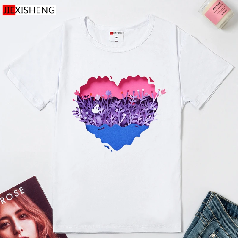 JIEXISHENG женская футболка с 3D принтом любви 5 цветов с коротким рукавом и круглым вырезом Топы футболки HH1597