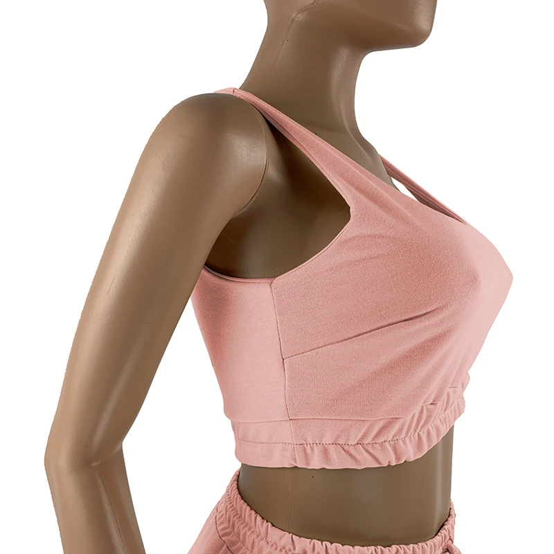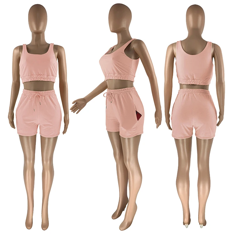 Женский Повседневный однотонный спортивный костюм, комплект из двух предметов, летний укороченный топ и шорты на шнуровке, подходящий комплект для девочек, одежда для отдыха 2021