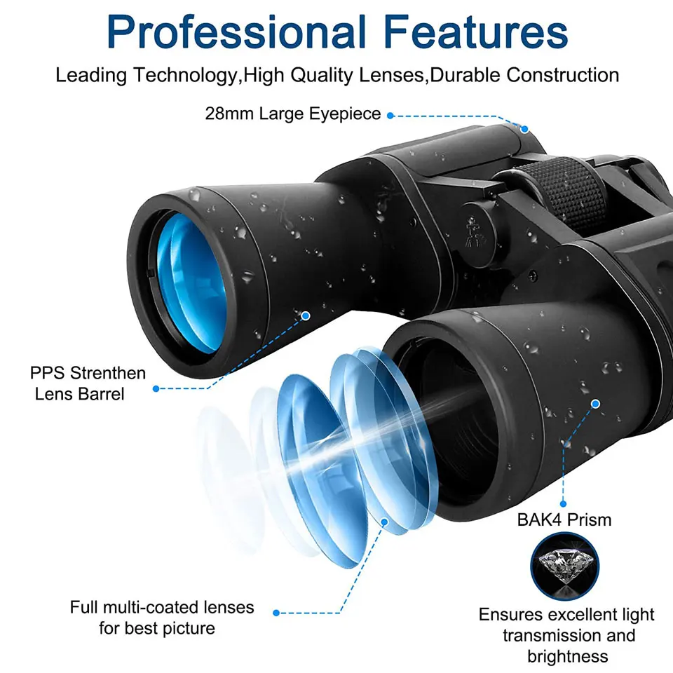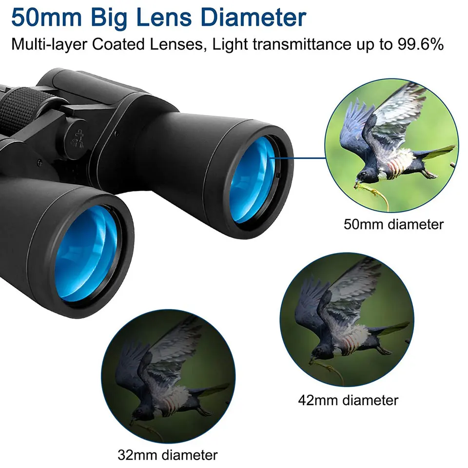 Мощный бинокль 20x50 HD, телескоп для охоты, наблюдения за птицами, дикой природы и концертов, водонепроницаемый противотуманный призматический FMC объектив BAK4
