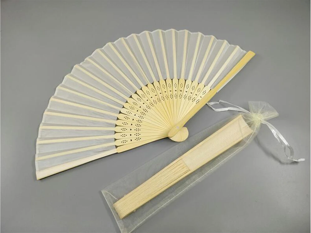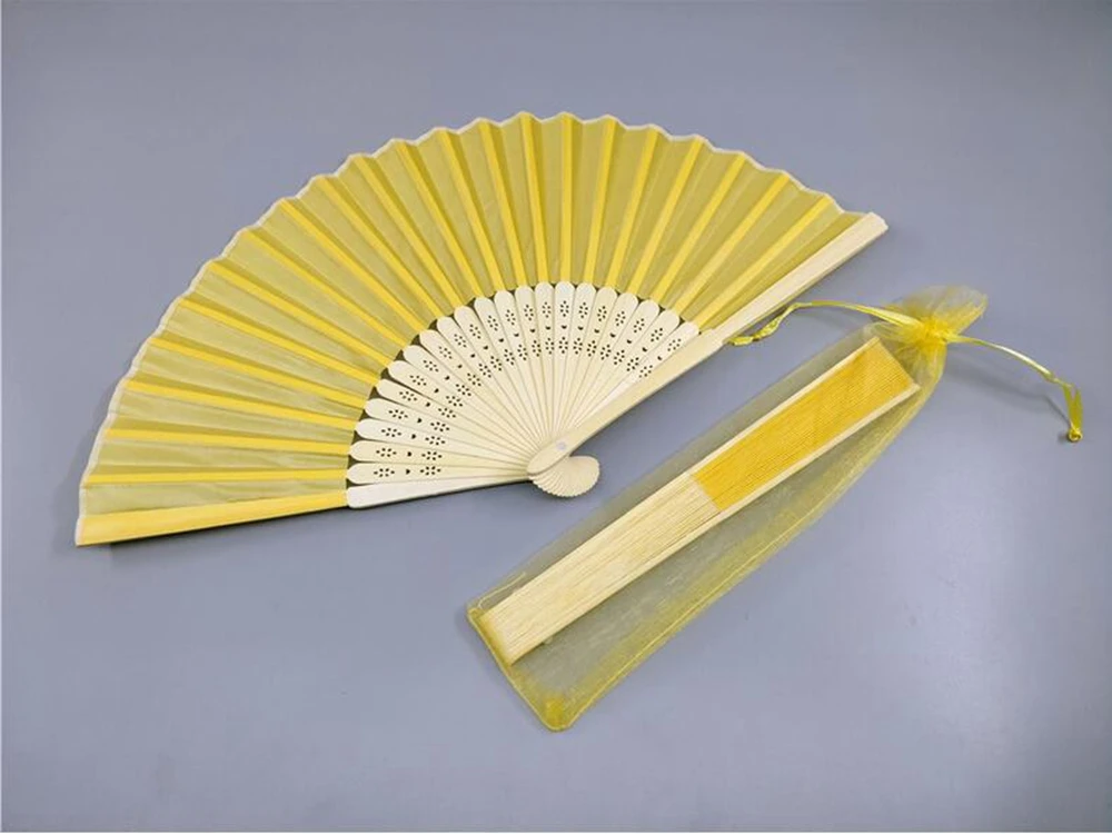 Материал: шелковая ткань, Бамбуковая ткань Размер: приблизительно длинный. 21 см x 37 см в ширину (при открытии) Посылка: 60 шт. ручной вентилятор + сумки из органзы