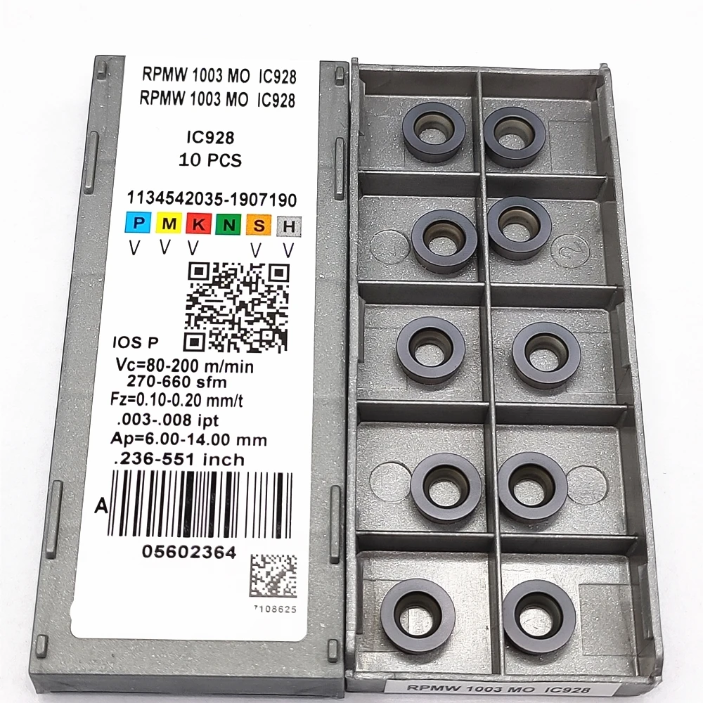 Набор токарных пластин, твердосплавные втулки RPMW1003MO IC928, RPMW1003 MO IC928, 10 шт.