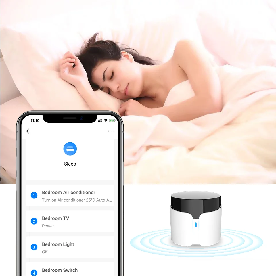 Wi-Fi, интеллектуальное управление проста в использовании, только один шаг соединения до вашего дома или офиса Wi-Fi, без ворота, с поддержкой Wi-Fi 2,4 ГГц 802,11 b/g/n, сеть 3G и 4G индивидуальная Настройка для здорового сна, вы можете настроить состояние воздуха, режим времени и температуру, установив собственную температуру сна. Дистанционное управление на дальние расстояния с открытым воздухом conditon, установите режим кондиционера и один клик, чтобы открыть телевизор, ТВ-бокс и т. Д. Поймать все Инфракрасные приборы, совместимые с инфракрасными приборами: кондиционер, телевизор, ТВ-боксы, IP ТВ, аудио, DVD проекторы, SLR камеры и т. Д. Поддержка автономного обучения, управление большим количеством устройств. Управление приложением три шага для подключения приложения, легко контролировать изменение температуры. Поддержка приложений для Android и IOS. Используя приложение Broadlink, вы можете управлять устройствами в любом месте, в любое время