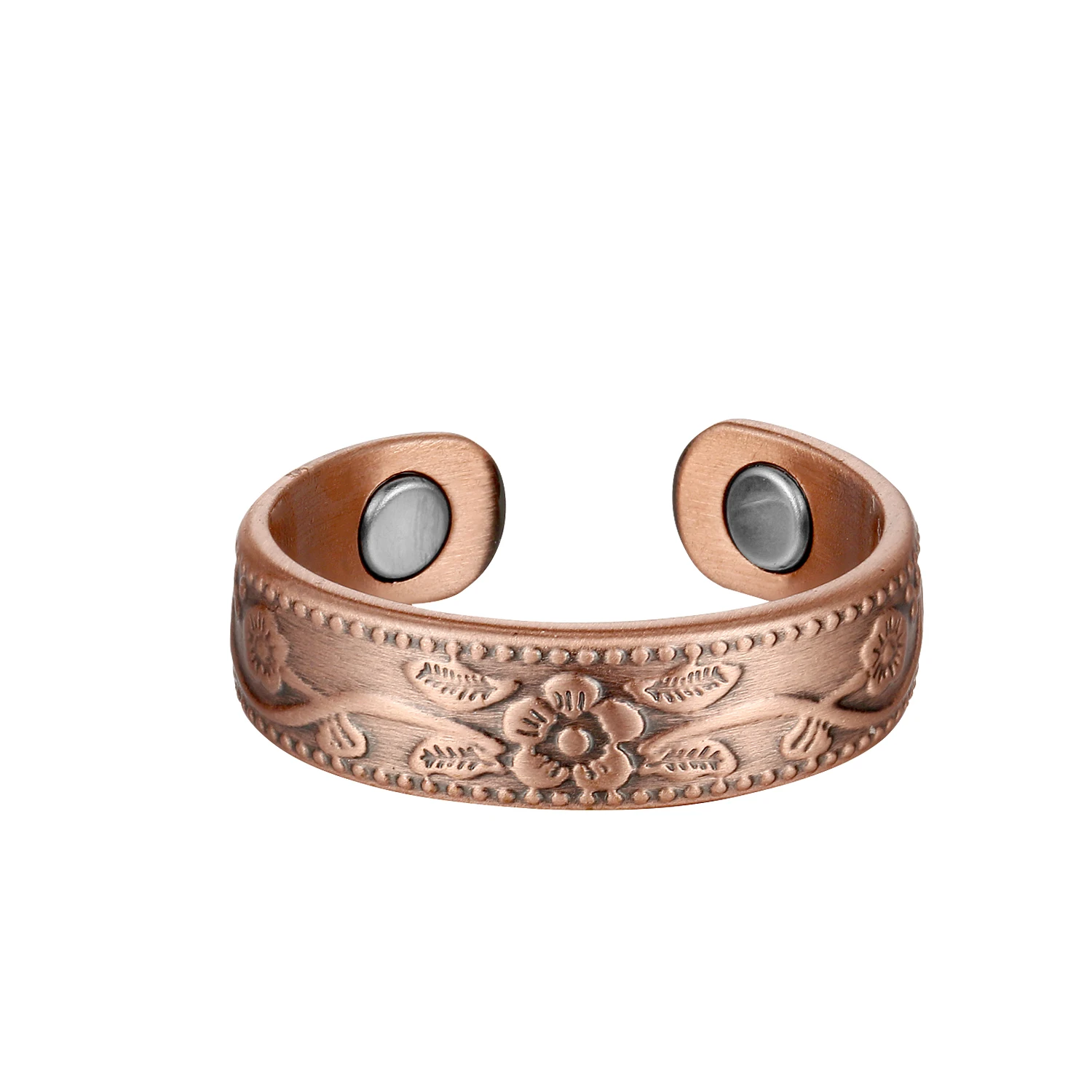 Цветок магнитные кольца из чистого Медь Регулируемая манжета кольцо Для мужчин 2 шт. магниты здоровья энергии кольца для снятия боли при артрите