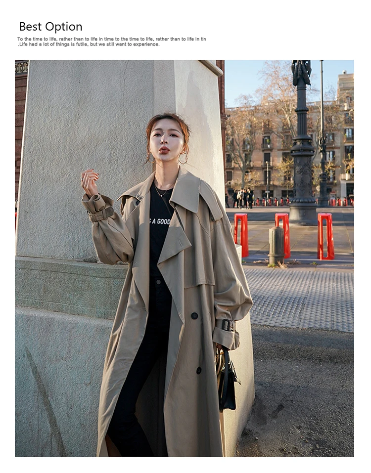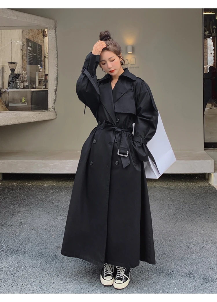 Женский двубортный плащ с поясом, Свободное длинное пальто большого...