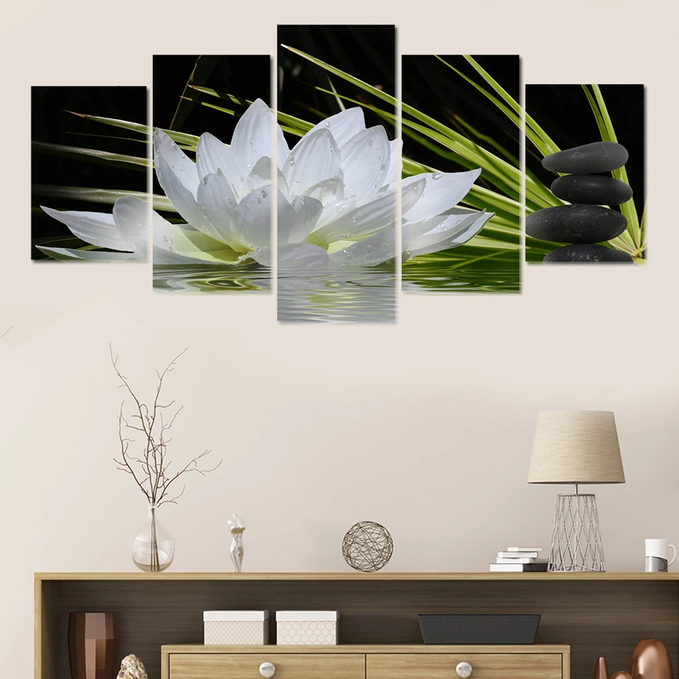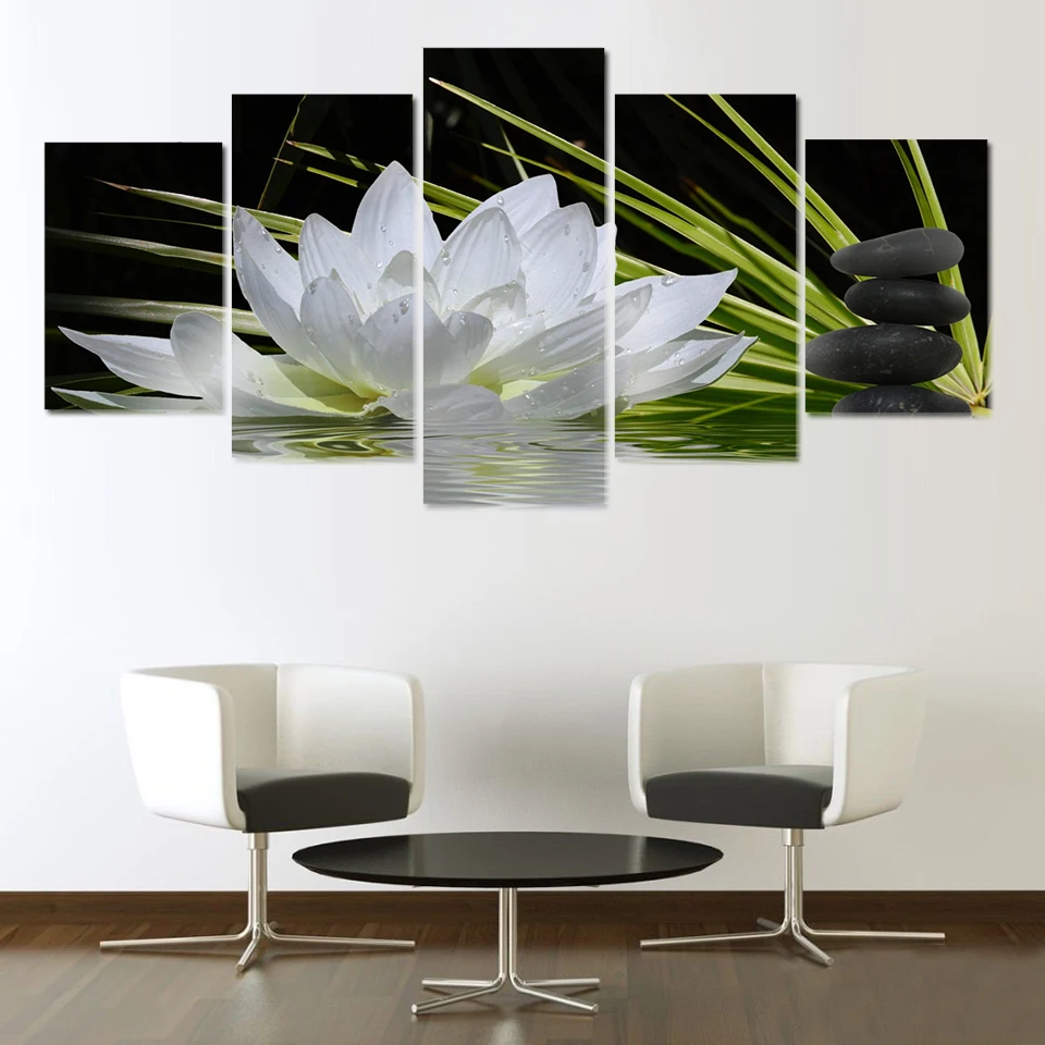Постер HD 5 абстрактная белая Цветочная Картина на холсте Лотос гостиная растение настенное искусство скандинавский Декор для дома