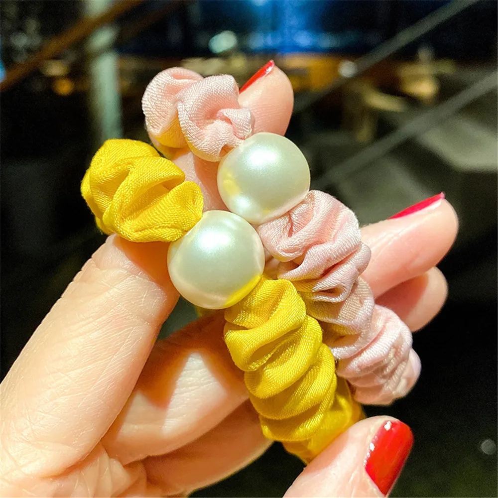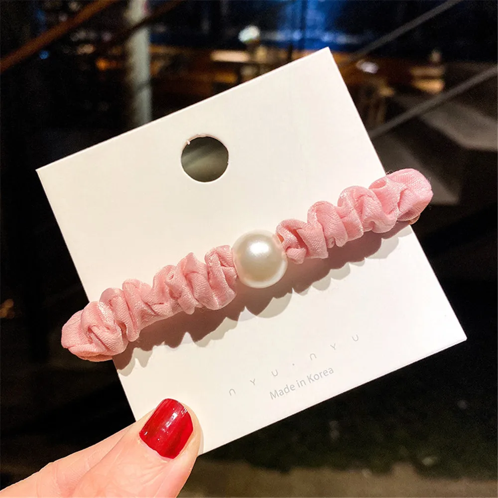 Резинка для волос с жемчугом Женская, высокоэластичная заколка-бант с милыми жемчужинами, аксессуары для волос, головной убор