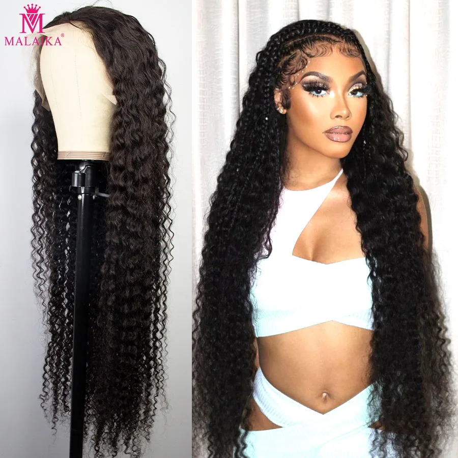 Парик Malaika кудрявый из натуральных волос, на сетке спереди, парик на сетке спереди, 180 постоянный парик на сетке спереди, предварительно выщипанные отбеленные парики с узлами, парики Remy 13x4 на сетке