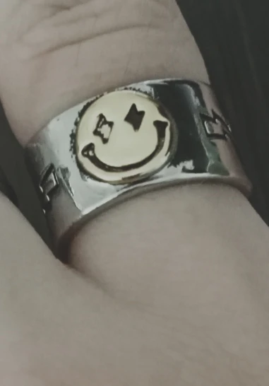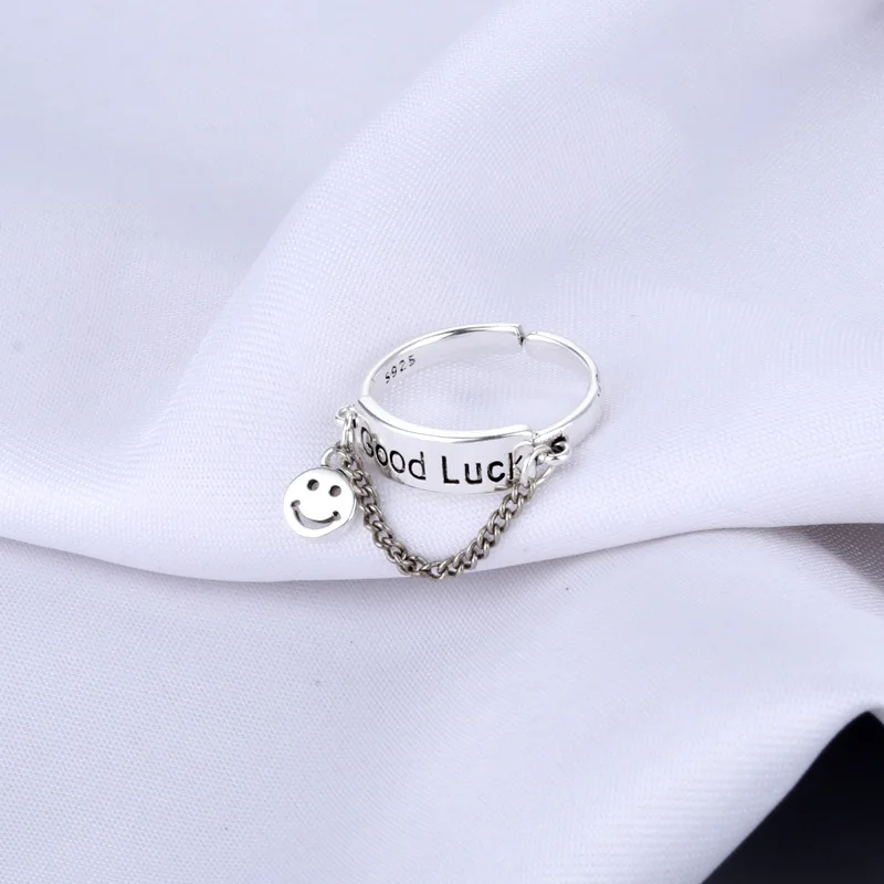 Кольцо унисекс, регулируемое, винтажное, цвет: старое серебро, Счастливое Улыбающееся Лицо, открытое, для женщин, хип-хоп, ювелирное изделие с надписью на удачу