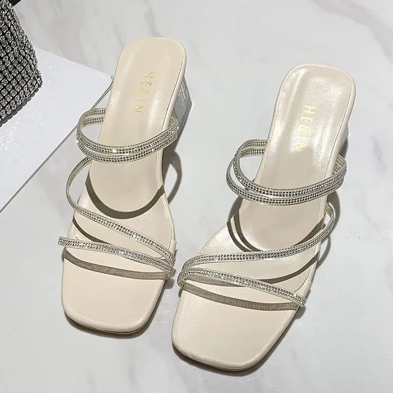 Стразы; Обувь на высоком каблуке; Женские летние стильные сандалии;...