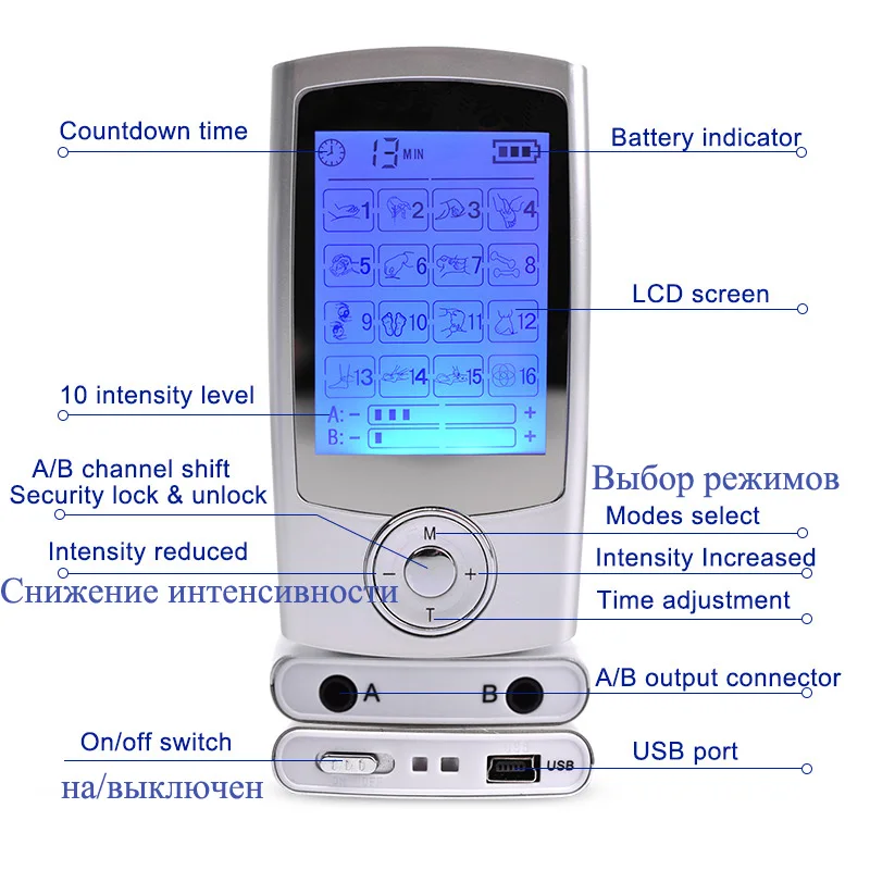 Электронный импульсный массажер, перезаряжаемый стимулятор мышц, 16...