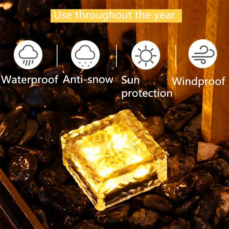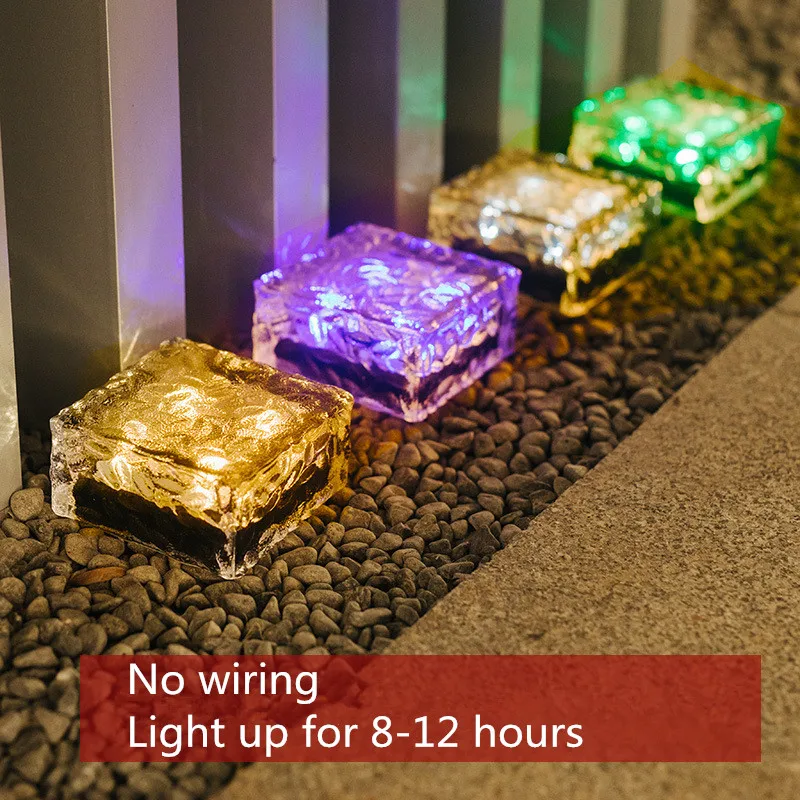 Креативный светильник для пола на солнечной батарее без проводов, светодиодный водонепроницаемый светильник из ледяного кирпича, уличное украшение для двора, сада, ландшафта