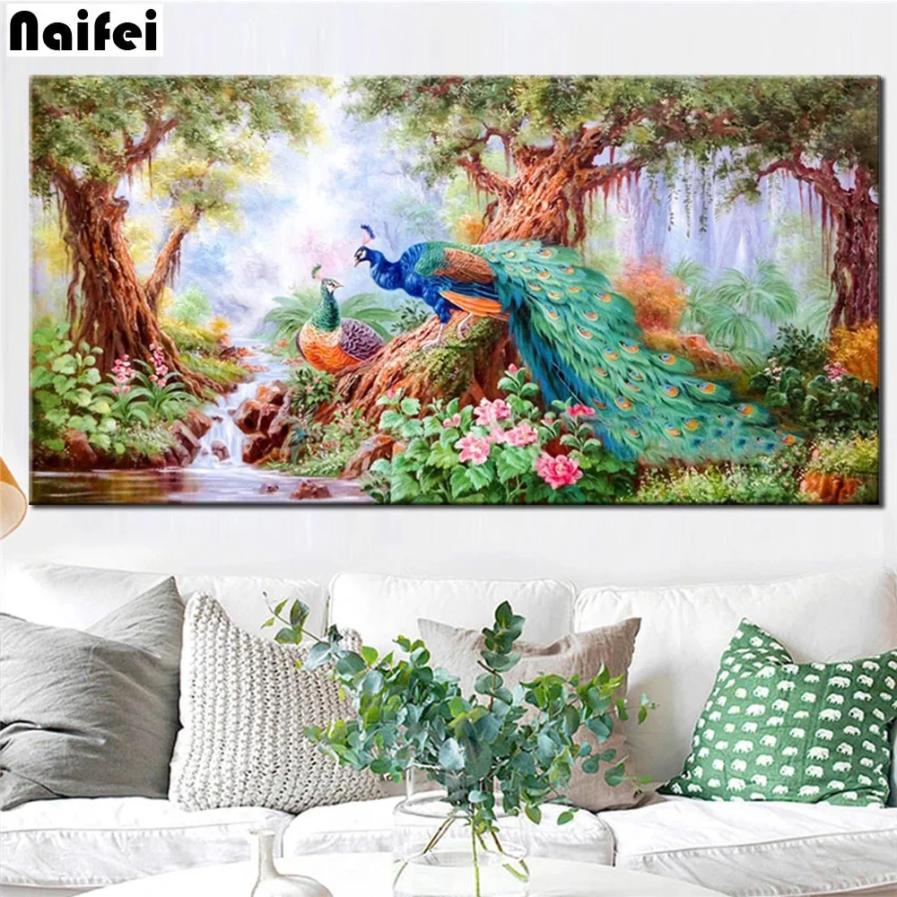 Природный пейзаж 5d DIY алмазная живопись красочный павлин вышивка крестом полный квадратный Круглый Алмаз вышивка значки Алмазная мозаика продажа домашнего искусства,