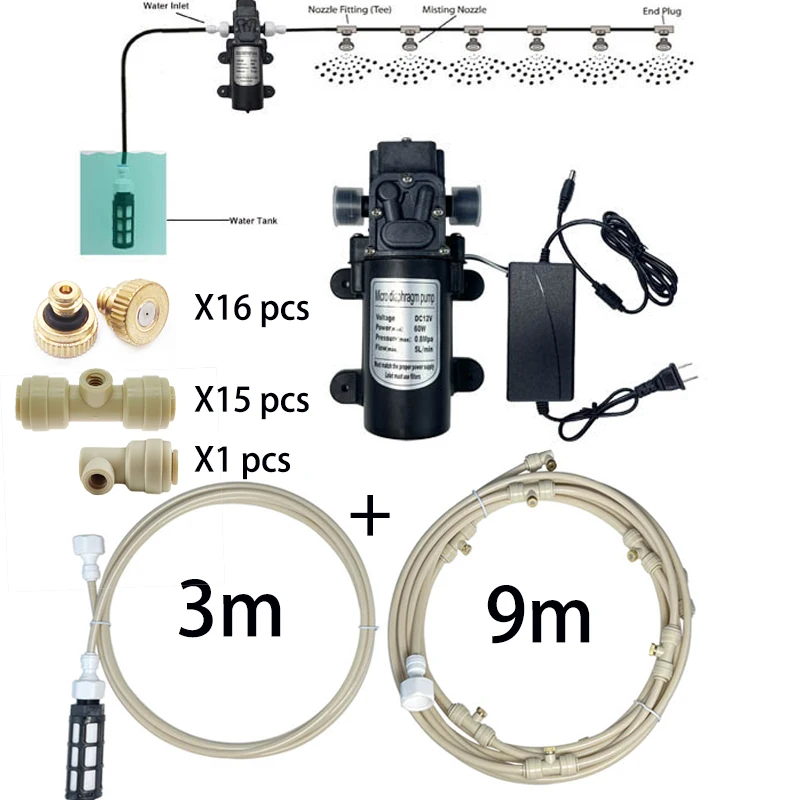 Комплекты для полива 6-18 м, диафрагменный насос 12 В постоянного тока, распылитель тумана, распылитель воды, небулайзер с резьбой, сопло 10-24 UNC, система охлаждения с запотеванием