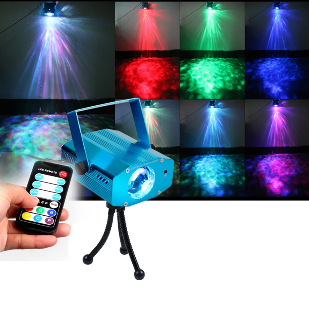 7 цветов, диско-свет s, светодиодный эффект воды, рябь, световой проектор, сценический свет s, звук, активированный с пультом дистанционного управления для DJ KTV Disco