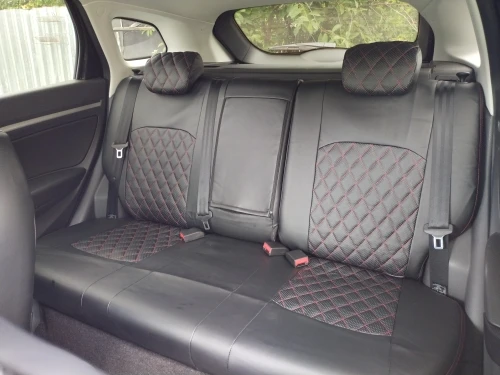 В целом все не плохо!все подошло и село на свои места.Черные чехлы с красной строчкой,в черной Весте,смотрится шикарно!Из минусов:местами не ровные швы и торчат нитки,сзади разошёлся замок(фото выложу)крючков маловато.В комплектации нет чехла на передний подлокотник (пришлось заказать из Китая 200 руб)