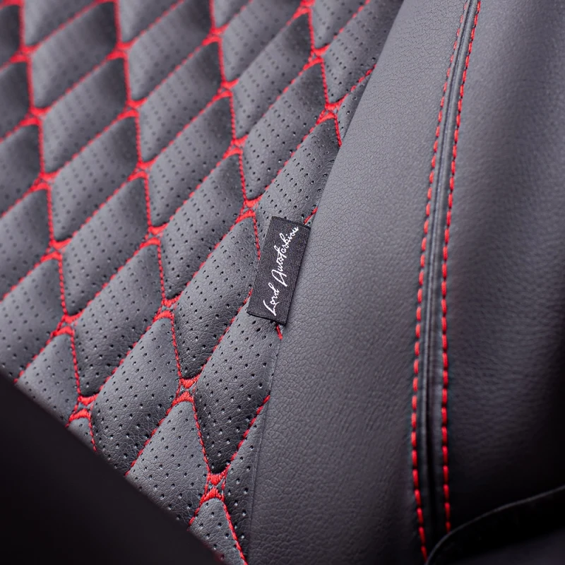 Чехлы модельные для Hyundai Solaris -1, 09.2010-01.2017, R8 Хэтчбек. Разд.зад.спинка 60/40, 2Г подголовн.Байрон Экокожа Чёрный , цвет вставки - Чёрный , цвет стежки - Красный.Комплект чехлов для сидений автомобиля Hyundai Solaris-1 хэтчбек раздельный зад 2011-2017 года премиум класса, серии «Байрон». На центральных деталях выполнена стёжка на спец оборудовании, боковые детали триплированы на поролоне 5 мм и отстрочены 2-х игольной строчкой. Спинка задних сидений закрыта карпетом. Предусмотрены все технологические отверстия. Данный чехол разработан по лекалам оригинального сиденья автомобиля, что гарантирует идеальную посадку. Надёжный крепеж, отличная прочность материала. Производятся из экокожи высокого качества, гарантированная толщина полимерного слоя 1,1 мм.Комплектация:спинки передние - 2 шт,сиденья передние - 2 шт,подголовники передние - 2 шт,подлокотник передний - нет,спинки задние - 2 шт,сиденья задние - 1 шт,подголовники задние - 2 шт,подлокотник задний - нет.Всего 11 элементов и крепежный набор для установки.