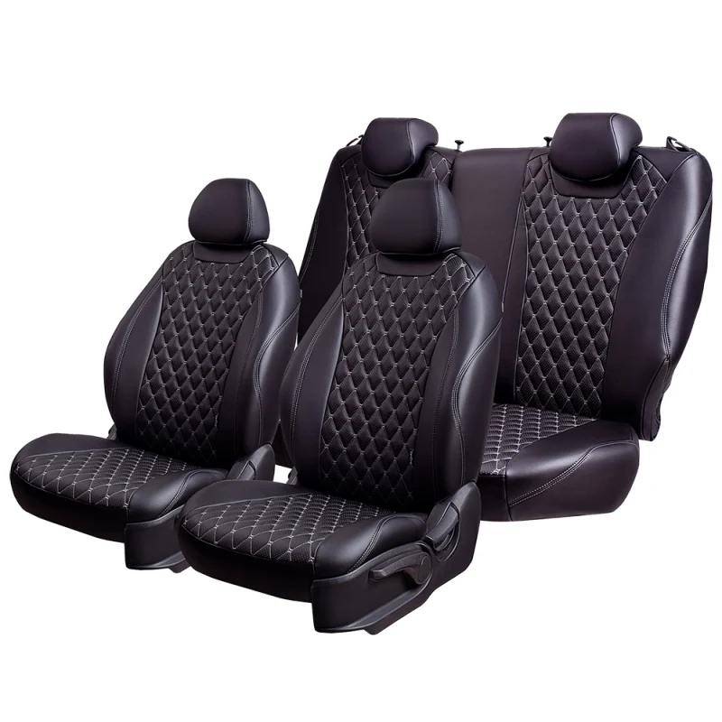 Чехлы модельные для Renault Sandero Stepway -2, с 12.2016, Разд.зад.спин.60/40, 2Прям.+1Г-образ.подгол.Байрон Экокожа Чёрный , цвет вставки - Чёрный , цвет стежки - Серый.Комплект чехлов для сидений автомобиля Renault Sandero Stepway-2 2016+ года премиум класса, серии «Байрон». На центральных деталях выполнена стёжка на спец оборудовании, боковые детали триплированы на поролоне 5 мм и отстрочены 2-х игольной строчкой. Спинка задних сидений закрыта карпетом. Предусмотрены все технологические отверстия. Данный чехол разработан по лекалам оригинального сиденья автомобиля, что гарантирует идеальную посадку. Надёжный крепеж, отличная прочность материала. Производятся из экокожи высокого качества, гарантированная толщина полимерного слоя 1,1 мм.Комплектация:спинки передние - 2 шт,сиденья передние - 2 шт,подголовники передние - 2 шт,подлокотник передний - нет,спинки задние - 2 шт,сиденья задние - 1 шт,подголовники задние - 3 шт,подлокотник задний - нет.Всего 12 элементов и крепежный набор для установки.
