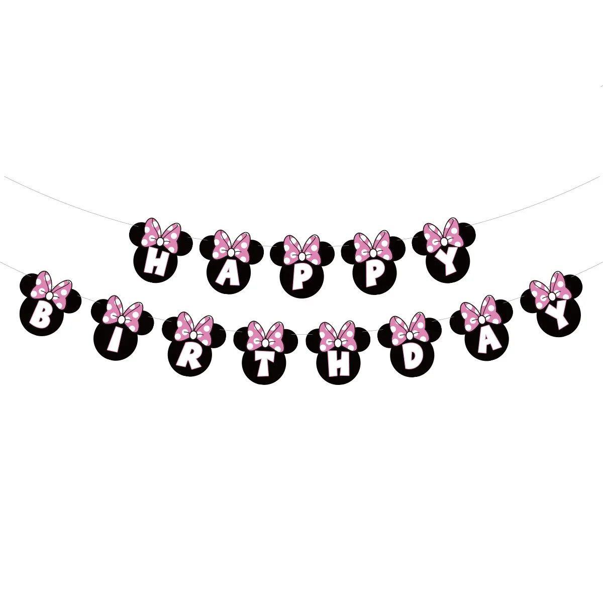 Happy Banner Disney Minnie mouse, украшение для дня рождения, однор...