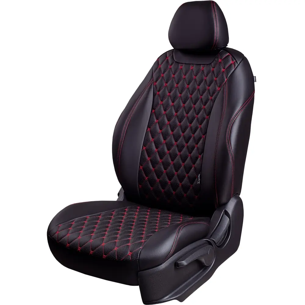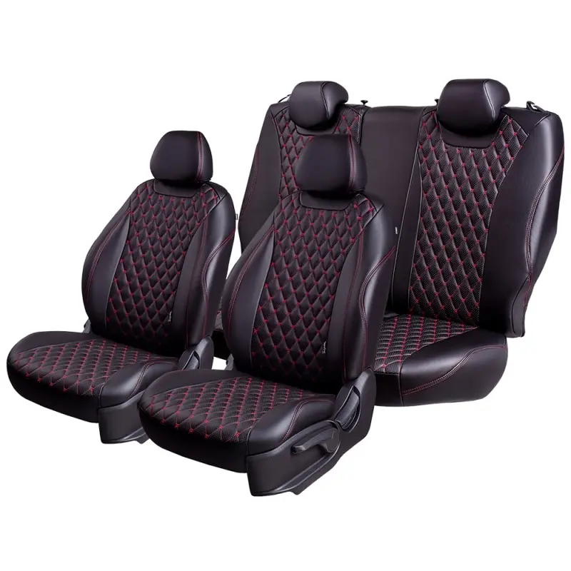 Чехлы модельные для Volkswagen Polo -5, с 03.2008, 6R/6C Седан/ Хэтч. Разд.зад.спин.и сид.40/60, 2Прям.+1Г-образ.подгол.Байрон Экокожа Чёрный , цвет вставки - Чёрный , цвет стежки - Красный.Комплект чехлов для сидений автомобиля Volkswagen Polo-5 (6R/6C) премиум класса, серии «Байрон». На центральных деталях выполнена стёжка на спец оборудовании, боковые детали триплированы на поролоне 5 мм и отстрочены 2-х игольной строчкой. Спинка задних сидений закрыта карпетом. Предусмотрены все технологические отверстия. Данный чехол разработан по лекалам оригинального сиденья автомобиля, что гарантирует идеальную посадку. Надёжный крепеж, отличная прочность материала. Производятся из экокожи высокого качества, гарантированная толщина полимерного слоя 1,1 мм.Комплектация:спинки передние - 2 шт,сиденья передние - 2 шт,подголовники передние - 2 шт,подлокотник передний - нет,спинки задние - 2 шт,сиденья задние - 2 шт,подголовники задние - 3 шт,подлокотник задний - нет.Всего 13 элементов и крепежный набор для установки.