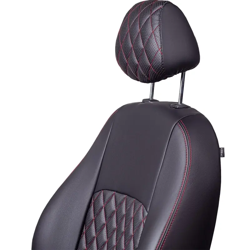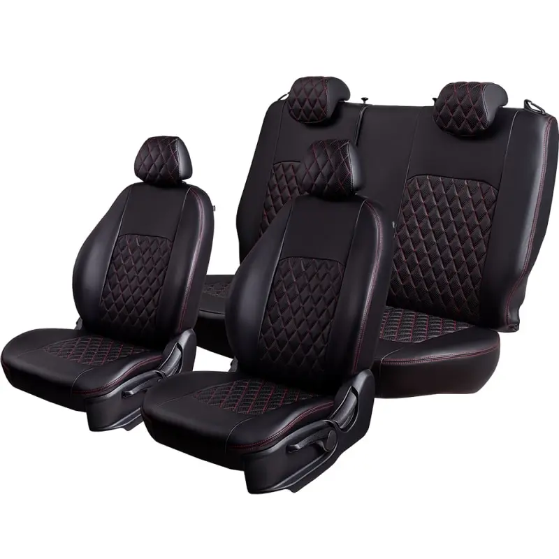 Чехлы для автомобильных сидений Ford Fusion -1, 08.2002-06.2012, РЗСиС6040, 2Г Турин Ромб Экокожа Чёрный Чёрный Красный