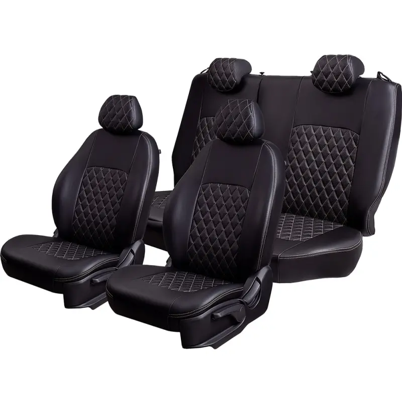 Чехлы модельные для Lada (ВАЗ) 21213 (4x4) Нива, 01.1994-11.2019 (Кросовер 3 двери)Турин Ромб Экокожа Чёрный , цвет вставки - Чёрный , цвет стежки - Бежевый.Комплект чехлов для сидений автомобиля ВАЗ (Lada) 21213 Нива 1994+ (3 дв) года серии «Турин Ромб». Выполнен из экокожи высокого качества. Спинка задних сидений закрыта карпетом. Центральные детали авточехла отстрочены ромбом на специальном оборудование. Данный чехол разработан по лекалам оригинального сиденья автомобиля, что гарантирует отличную посадку на ваши сиденья. Серия авто чехлов «Турин Ромб» прошла испытание на срабатывание подушек безопасности в научном центре “НАМИ” города Москвы и получила сертификат № РЩСС RU.Afl61.H00011. Комплектация:спинки передние - 2 шт,сиденья передние - 2 шт,подголовники передние - 2 шт,подлокотник передний - нет,спинки задние - 1 шт,сиденья задние - 1 шт,подголовники задние - нет,подлокотник задний - нет.Всего 8 элементов и крепежный набор для установки.