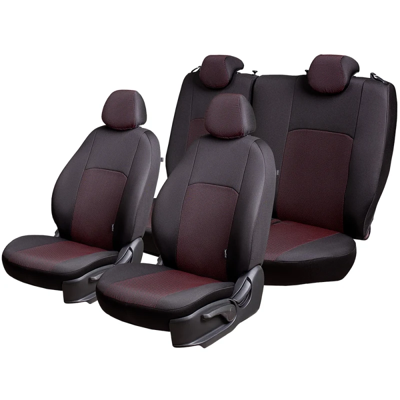 Чехлы для автомобильных сидений Lada Priora -1, 03.2007-07.2014, Хэтч. РЗС6040, 2П+2Г Дублин Жаккард Чёрный Ёж Красный