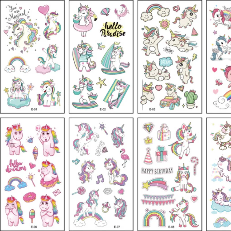 10 шт.лот детская тату-наклейка с животными, мультяшная лошадь, тату для детей, детская тату, Медведь, Лев, радуга, единорог, тату, детские наборы