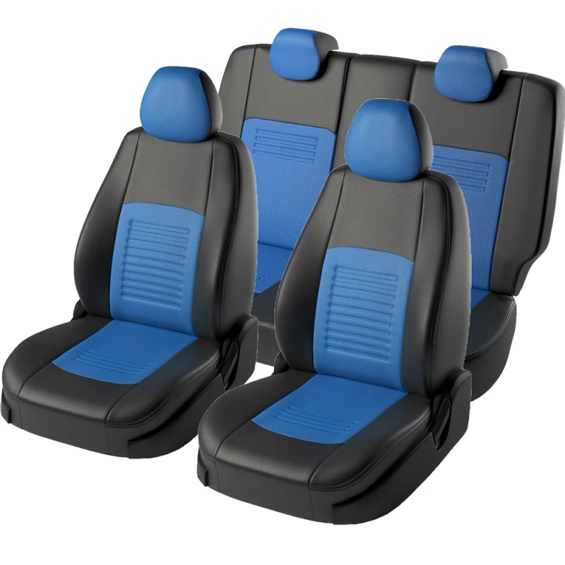 Чехлы модельные для Datsun on-Do -1, с 07.2014, Седан, Цельн.зад.спин. 3Г-образ.подголов.Турин Экокожа Чёрный , цвет вставки - Синий.Комплект чехлов для сидений автомобиля Datsun on-Do цельный зад 2014+ года серии «Турин». Выполнен из экокожи высокого качества. Спинка задних сидений закрыта карпетом. Центральные детали авточехла отстрочены на специальном оборудование. Данный чехол разработан по лекалам оригинального сиденья автомобиля, что гарантирует отличную посадку на ваши сиденья. Серия авто чехлов «Турин» прошла испытание на срабатывание подушек безопасности в научном центре “НАМИ” города Москвы и получила сертификат № РЩСС RU.Afl61.H00011. Комплектация:спинки передние - 2 шт,сиденья передние - 2 шт,подголовники передние - 2 шт,подлокотник передний - нет,спинки задние - 1 шт,сиденья задние - 1 шт,подголовники задние - 3 шт,подлокотник задний - нет.Всего 11 элементов и крепежный набор для установки.